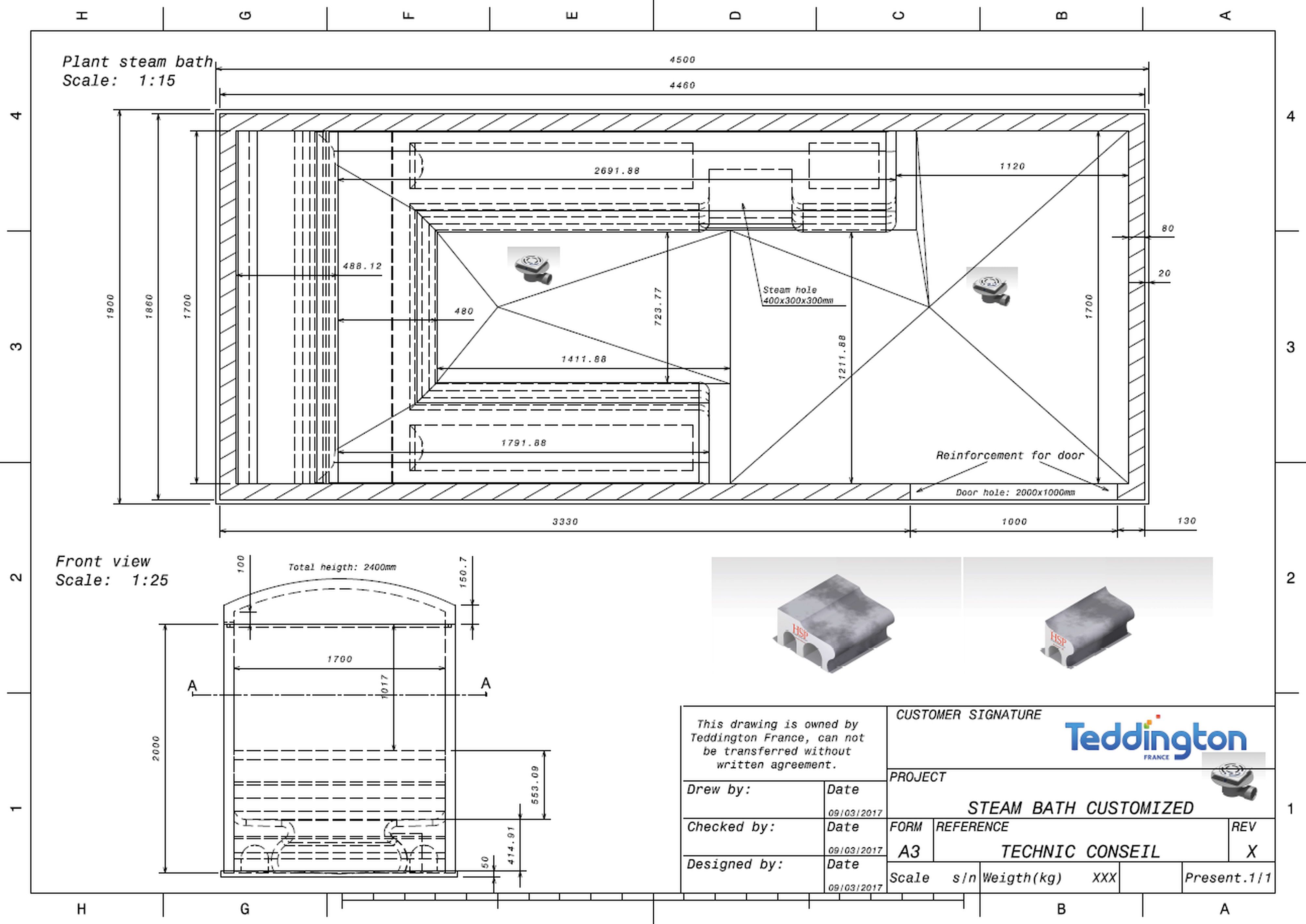 Cabine hammam sur-mesure 18 m3 prête à carreler en panneaux de 80 mm - TEDDINGTON