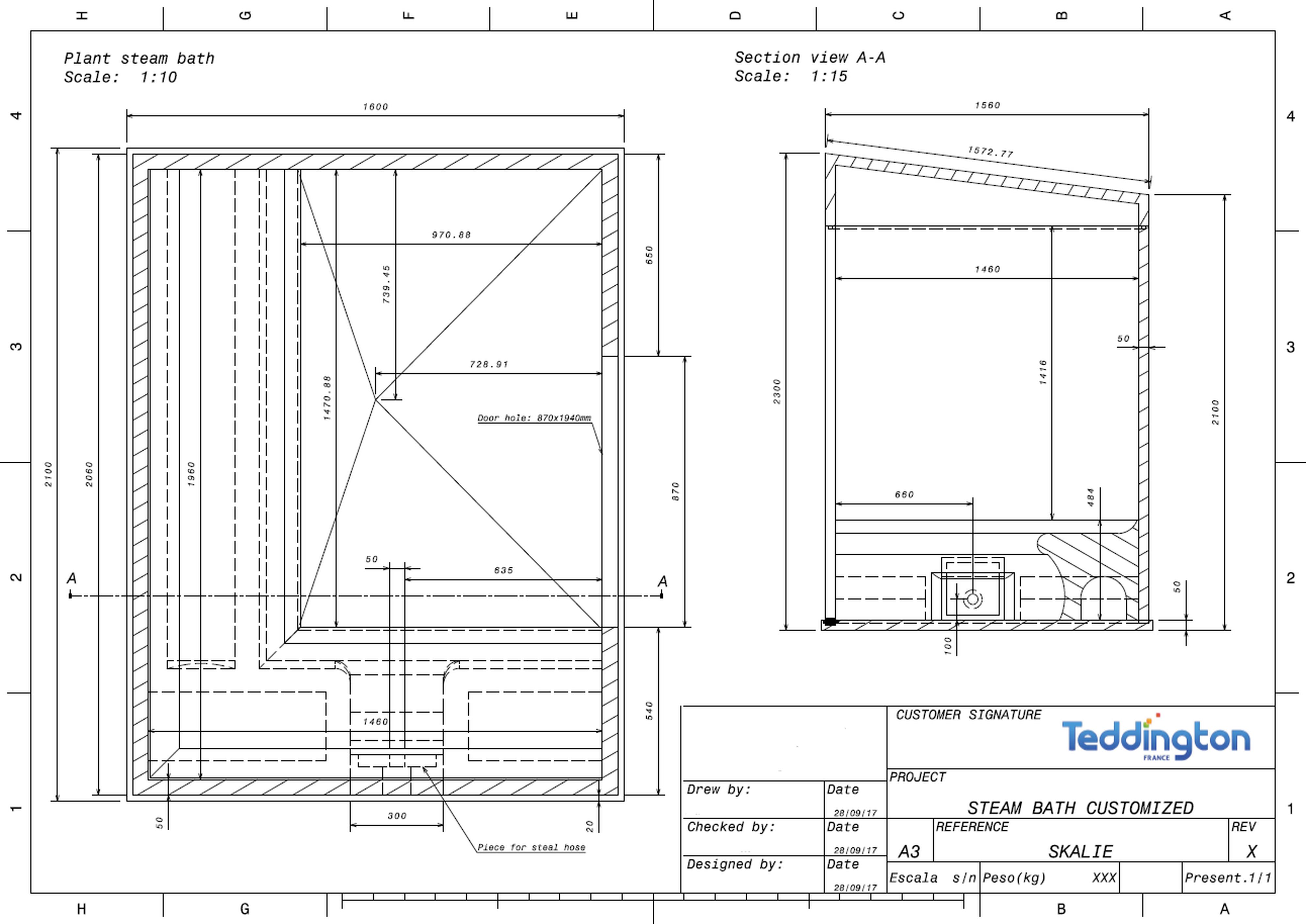 Cabine hammam sur-mesure 7 m3 prête à carreler en panneaux de 80 mm - TEDDINGTON