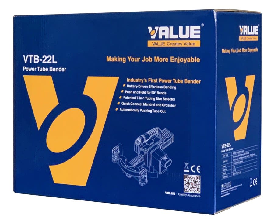 La cintreuse autonome à batterie VALUE TF-VTB22L économise beaucoup de temps et de main-d'oeuvre, et rend le travail beaucoup plus facile et précis. En appuyant sur le seul bouton de la cintreuse, vous pouvez plier le tube à n'importe quel angle souhaité. Lorsqu'un cintrage est terminé, le déflecteur éjecte le tube automatiquement pendant que l'outil se réinitialise, ce qui vous aide à retirer le tube sans effort. Sa batterie au lithium de grande capacité effectue environ 90 cintrage à chaque charge et peut être complètement chargée en 35 minutes.