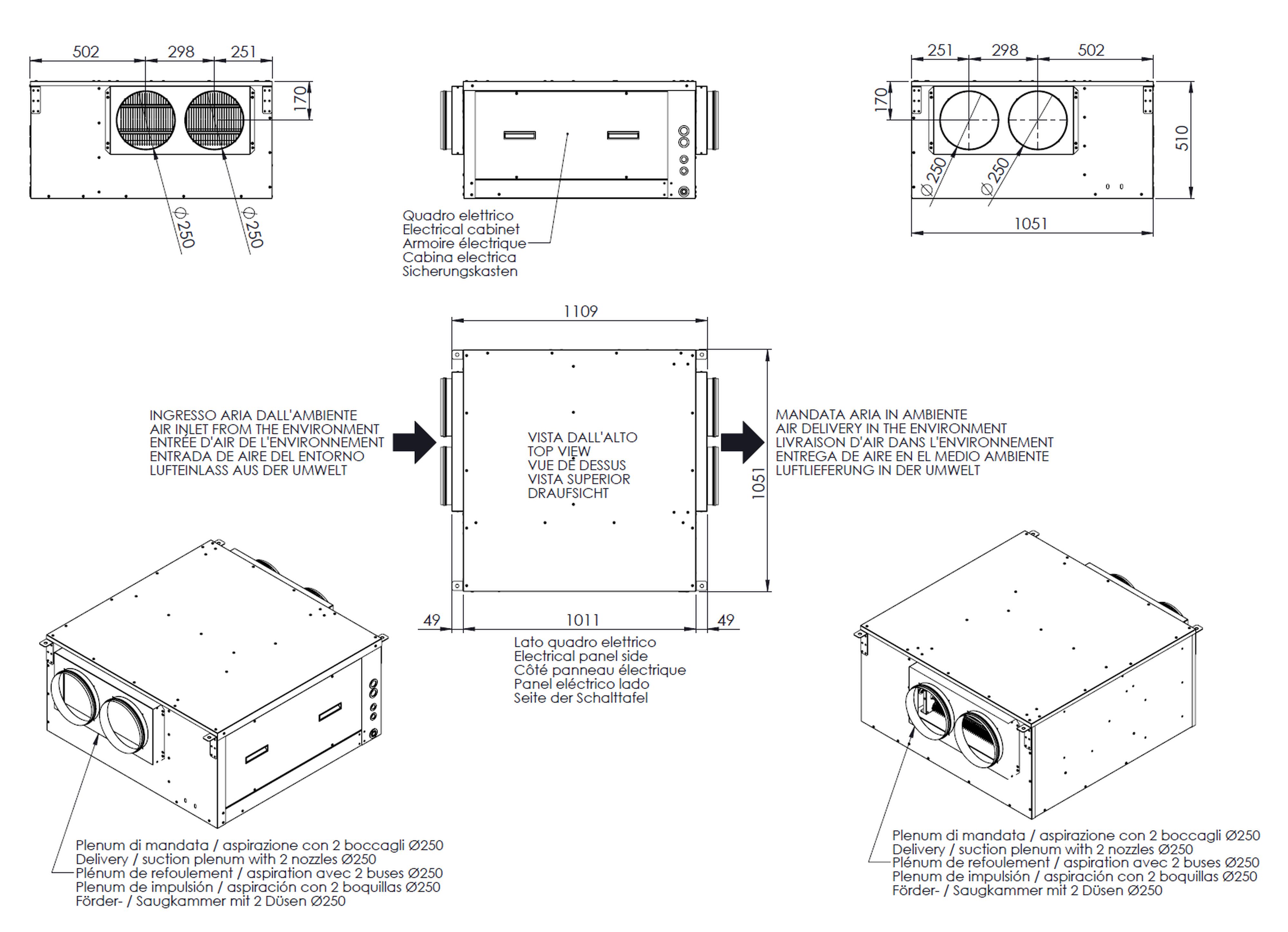 Equipé d'un ventilateur a débit variable qui ajuste automatiquement son débit d'air, ROMA 195 assure une parfaite diffusion de l'air dans le local via son réseau de 2 gaines en diametre 250 mm.