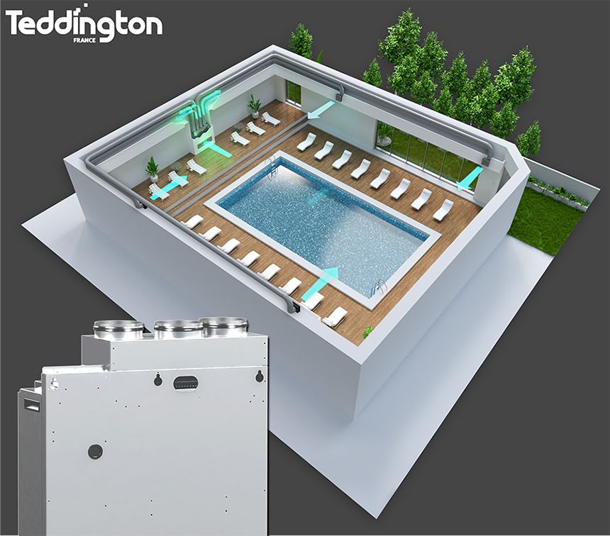 Teddington - Déshumidificateur d'air gainable 300 L/J - 2000 m3/h, gaines, plénums & grilles - NOVA305G