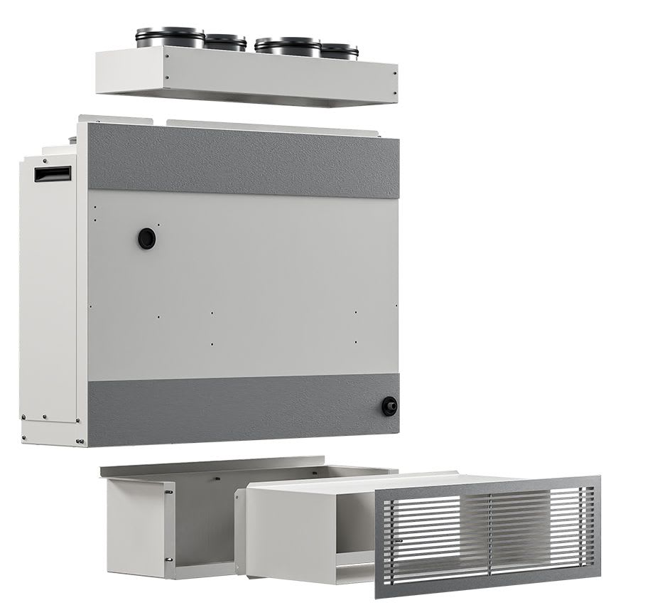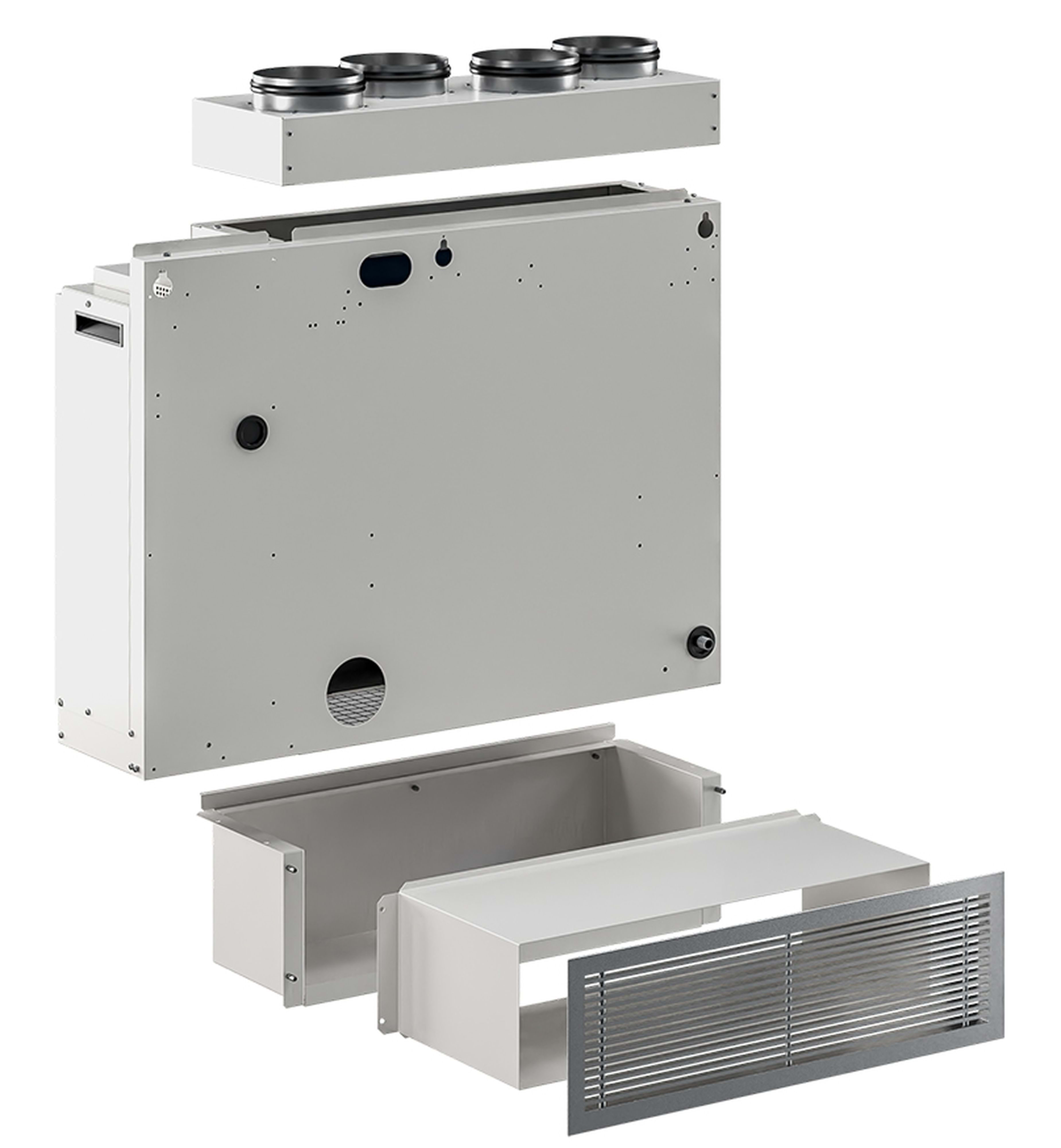 Déshumidificateur d'air gainable 300 L/J - 2000 m3/h, plenums, gaine et grille de reprise - TEDDINGTON