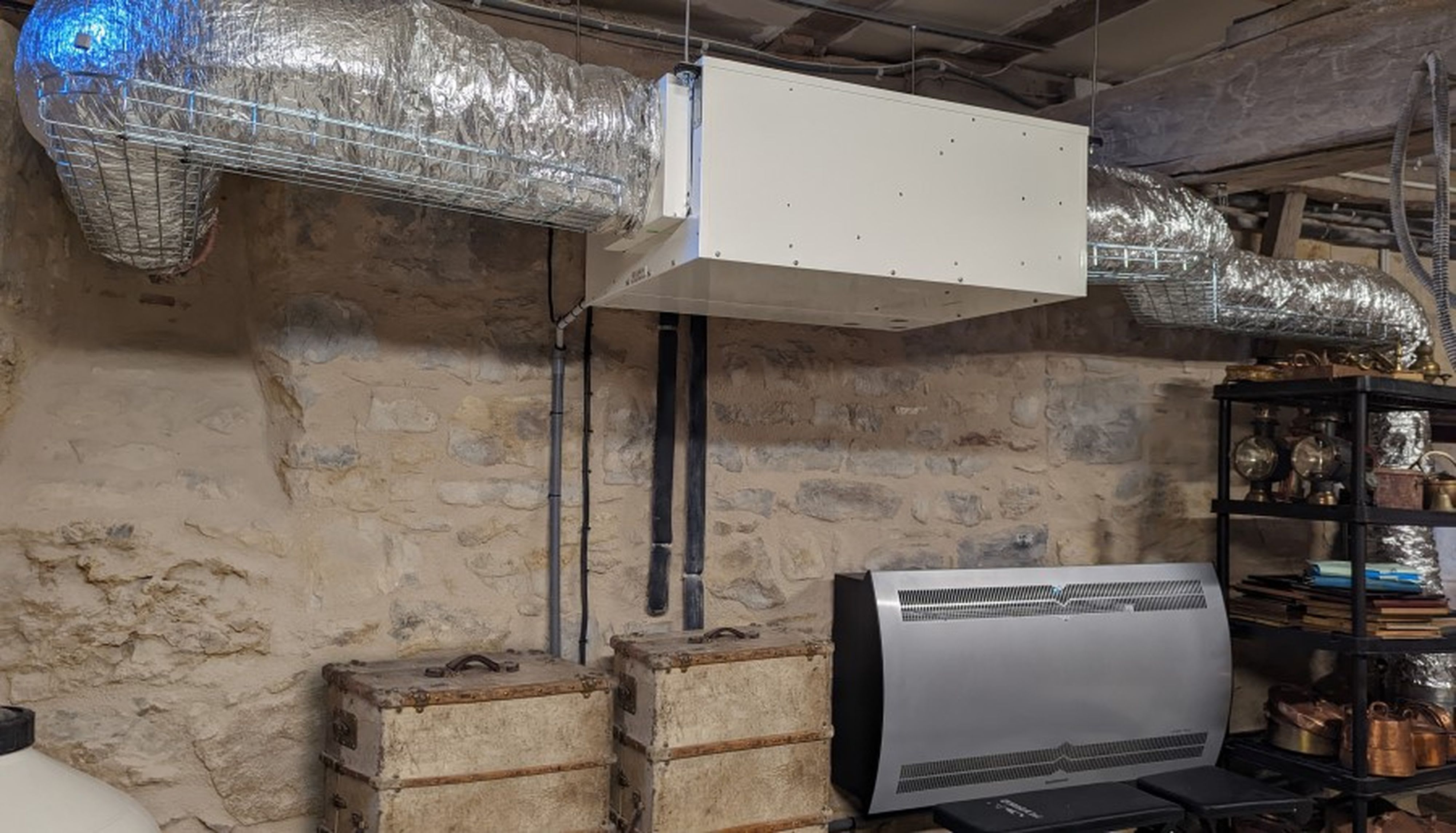 Equipé d'un ventilateur a débit variable qui ajuste automatiquement son débit d'air, ROMA 75 assure une parfaite diffusion de l'air dans le local via son réseau de gaine en diametre 250 mm.