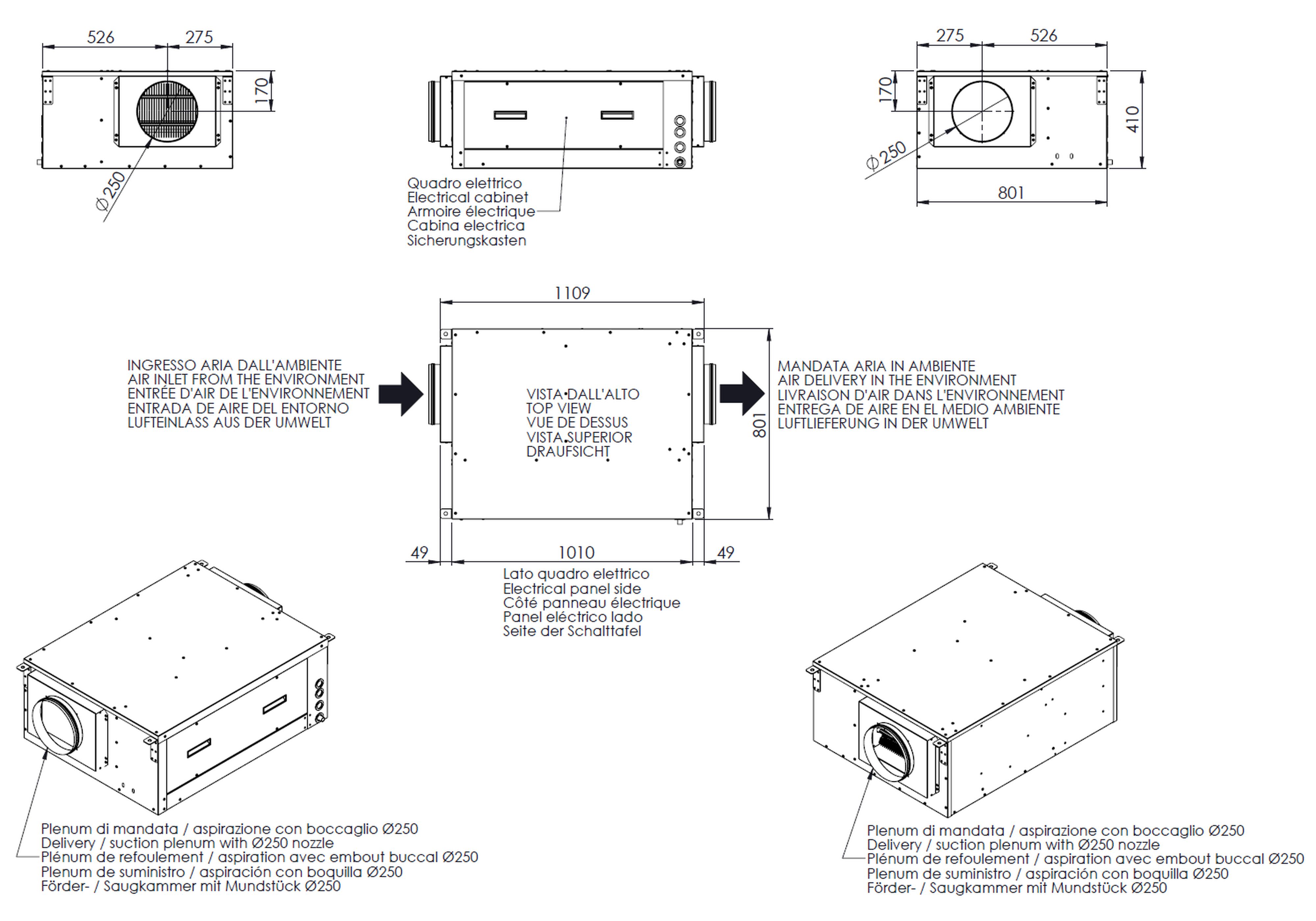 Equipé d'un ventilateur a débit variable qui ajuste automatiquement son débit d'air, ROMA 95 assure une parfaite diffusion de l'air dans le local via son réseau de gaine en diametre 250 mm.