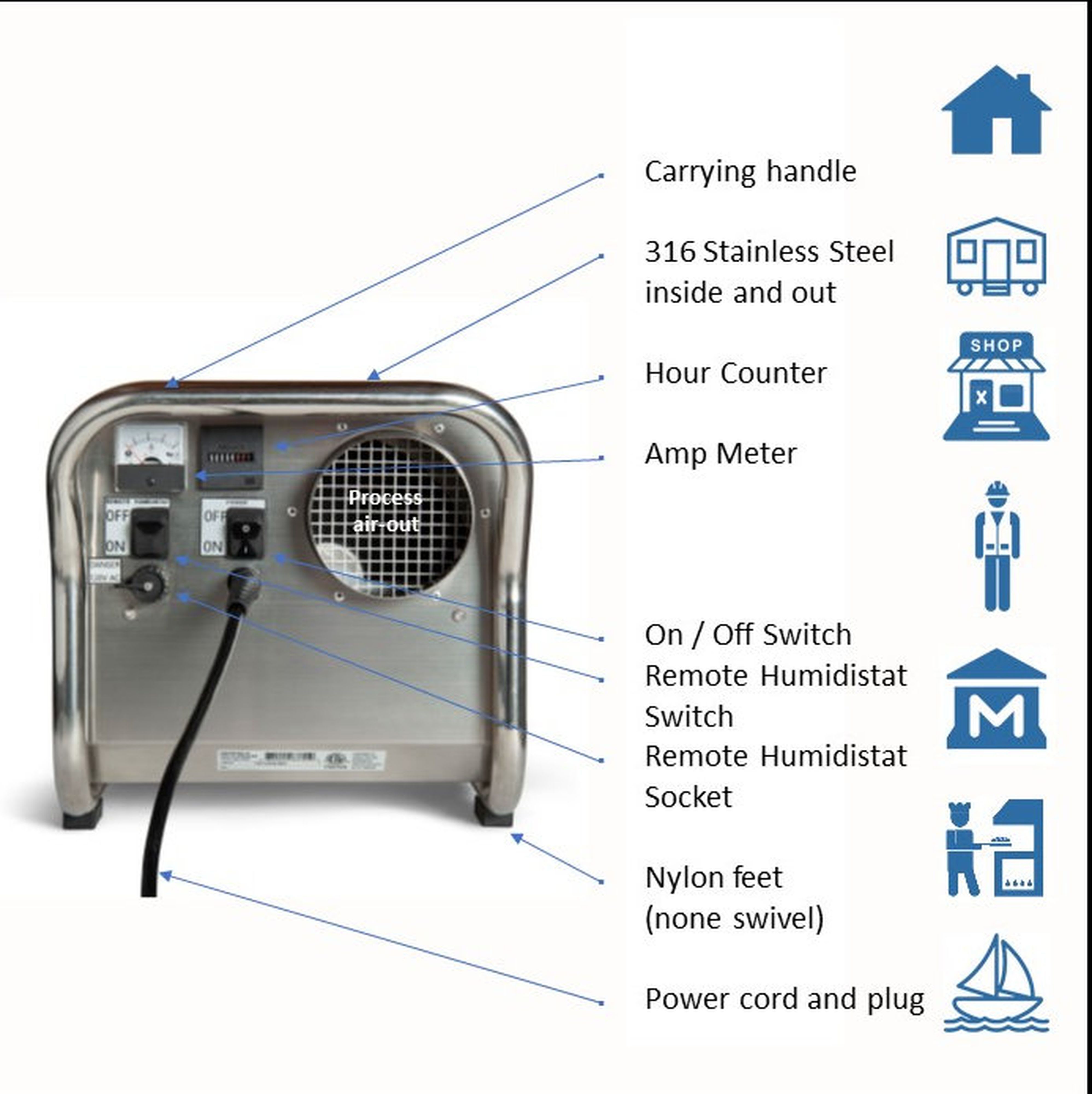 Déshydrateur à adsorption portable en INOX 45 L/j avec plug pour hygrostat externe - TEDDINGTON