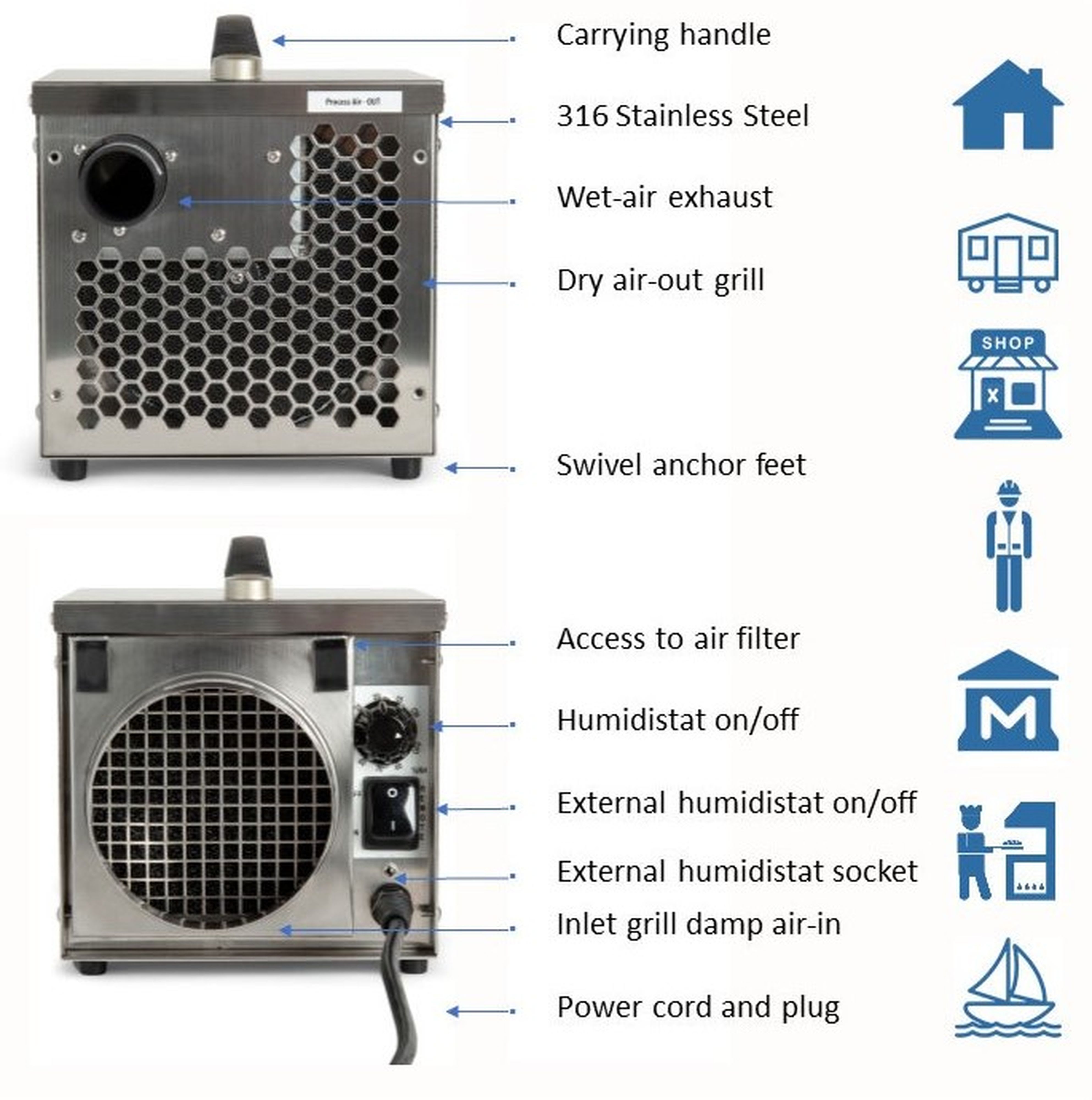 Teddington - Déshydrateur à adsorption portable en INOX avec hygrostat reglable 8 L/j - DH800I