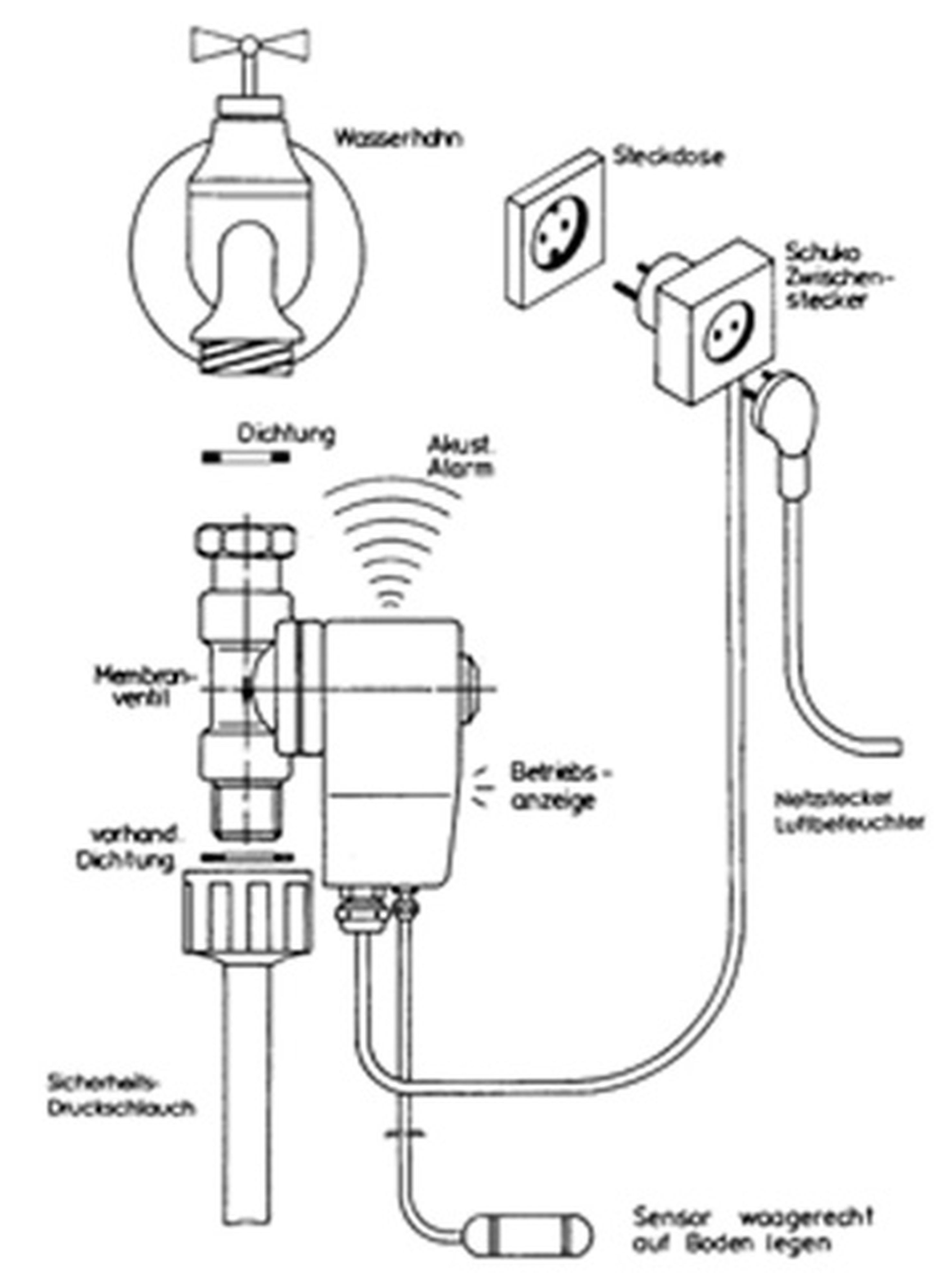 Détecteur d'eau de sécurité avec électrovanne et prise pour humidificateur - TEDDINGTON