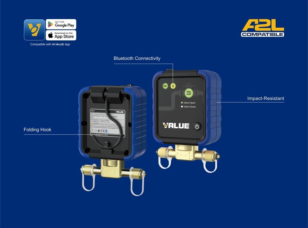 · Connexion aux appareils mobiles via Bluetooth à l'aide de l'application Hi VALUE. · Compatible avec les réfrigérants A2L. · Remplissez et récupérez sans effort le réfrigérant grâce à une utilisation simple. · 3 voyants pour le débit, le Bluetooth et l'alimentation indiquent l'état de fonctionnement en temps réel, visibles d'un seul coup d'œil. · Protection contre les surcharges : coupe le débit de fluide lorsque le poids dépasse la limite. · Coque en caoutchouc et plastique haute résistance résistante aux chocs, garantissant une grande durabilité. · Conception pratique : crochet dissimulé et structure compacte pour un transport facile. · Autonomie de 60 heures grâce à la batterie au lithium. · Port USB-C pour une recharge rapide et écologique
