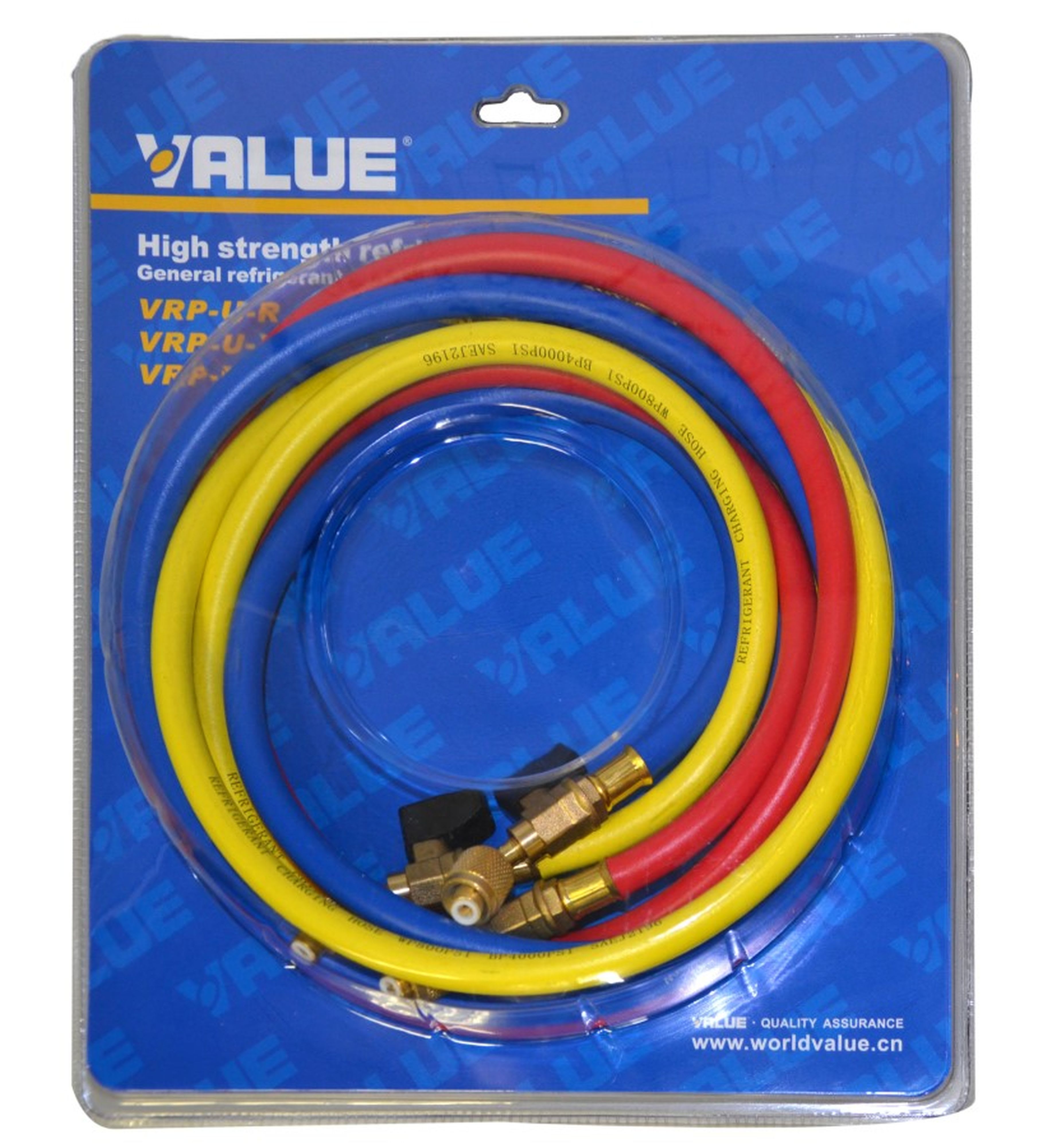 Flexibles de charge 90 cm (x3) avec vannes (RJB : 1/4"-1/4") - VALUE