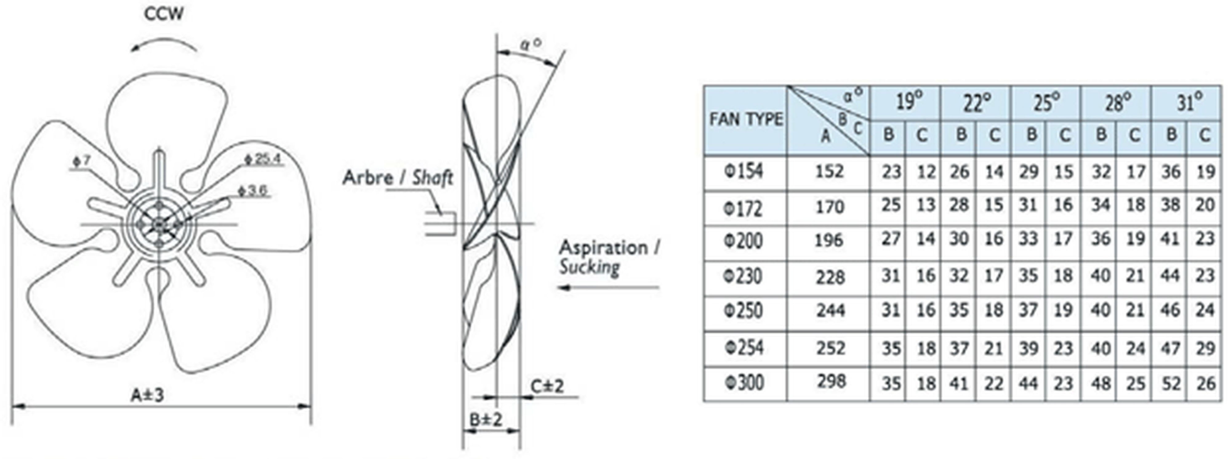 Hélice diamètre 170 mm soufflante 28° - TEDDINGTON