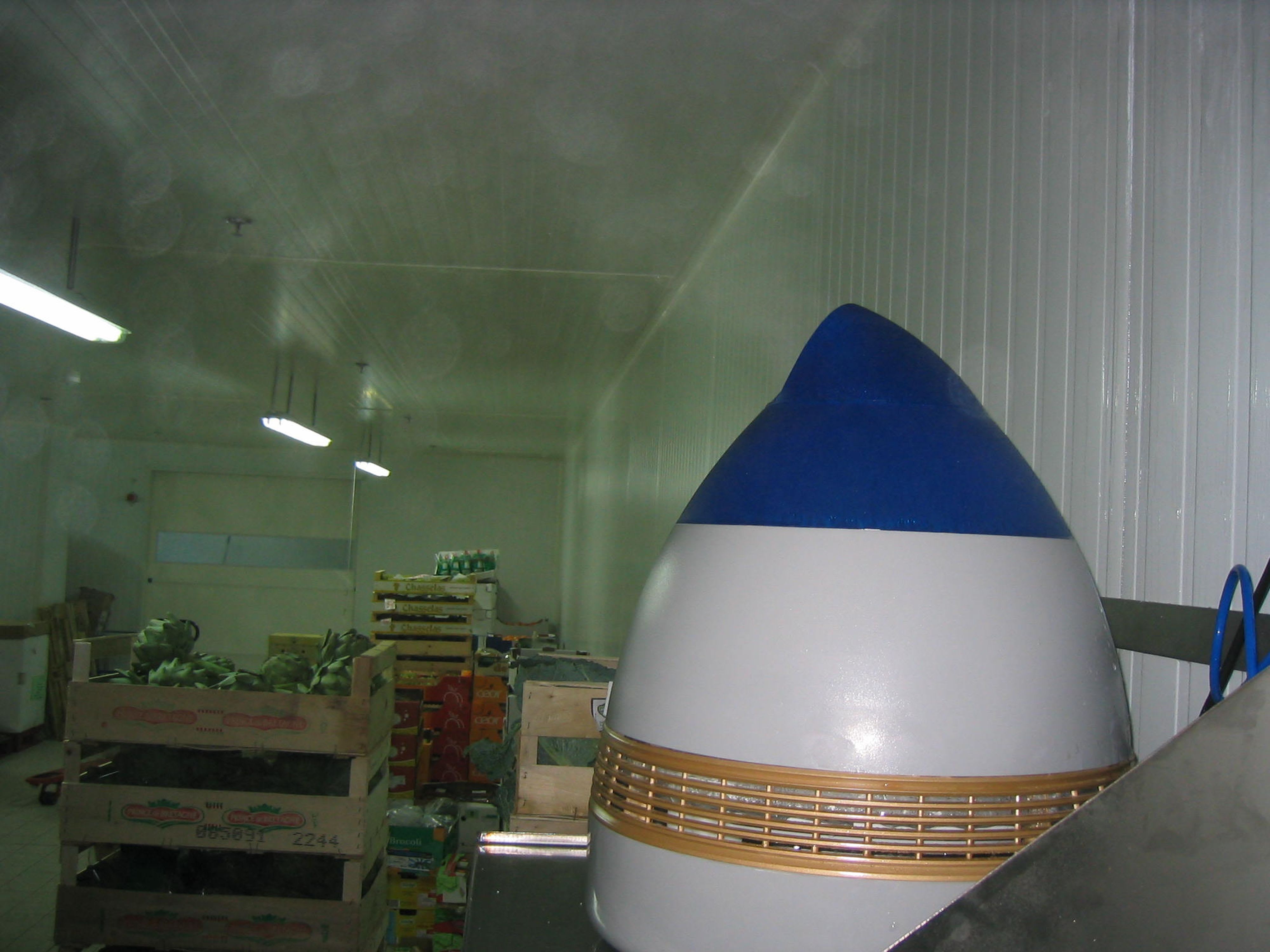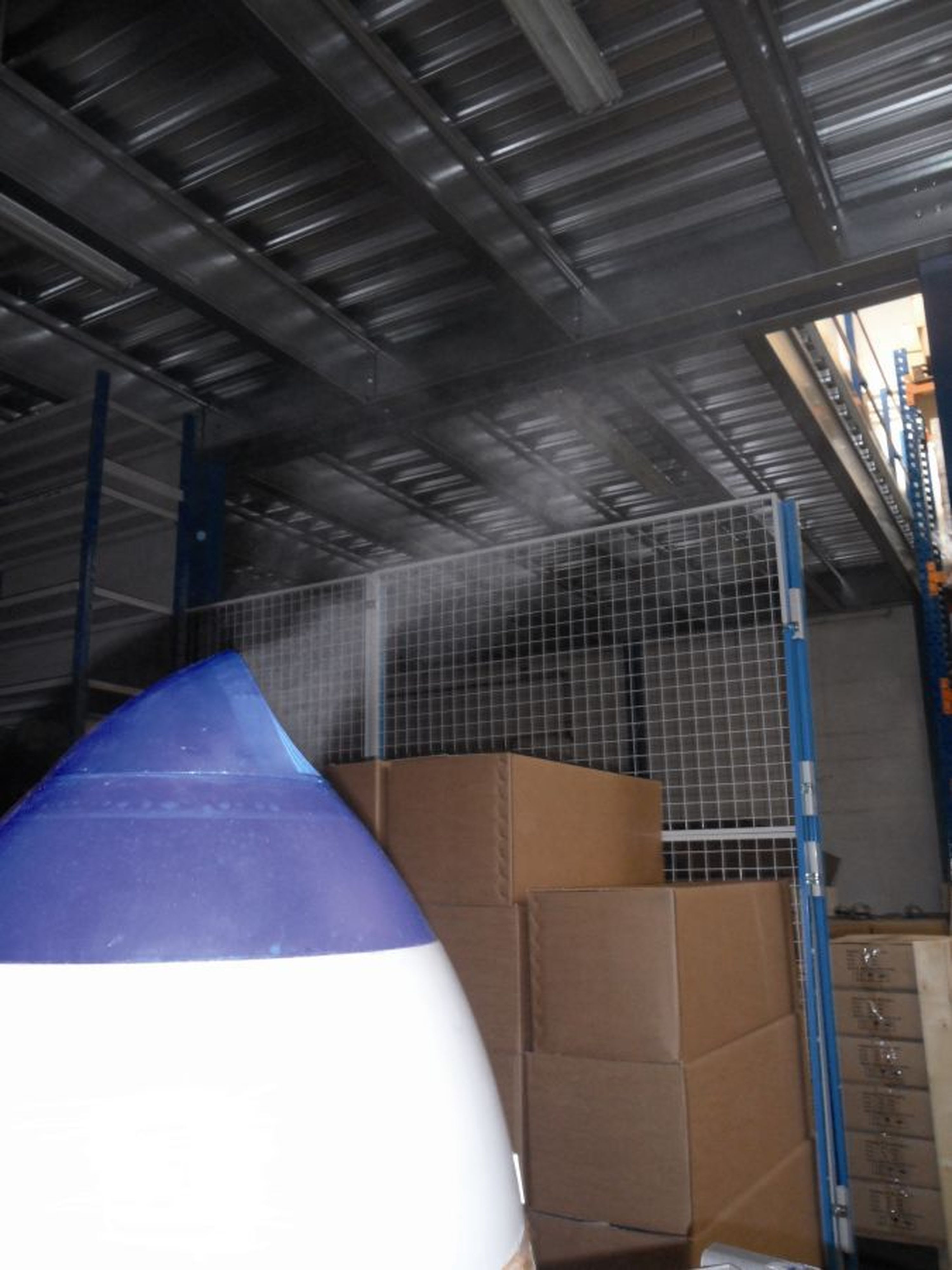 L'eau est pulsée par la force centrifuge via un disque rotatif et brumisée en fines particules dans le local grâce a un ventilateur puissant.