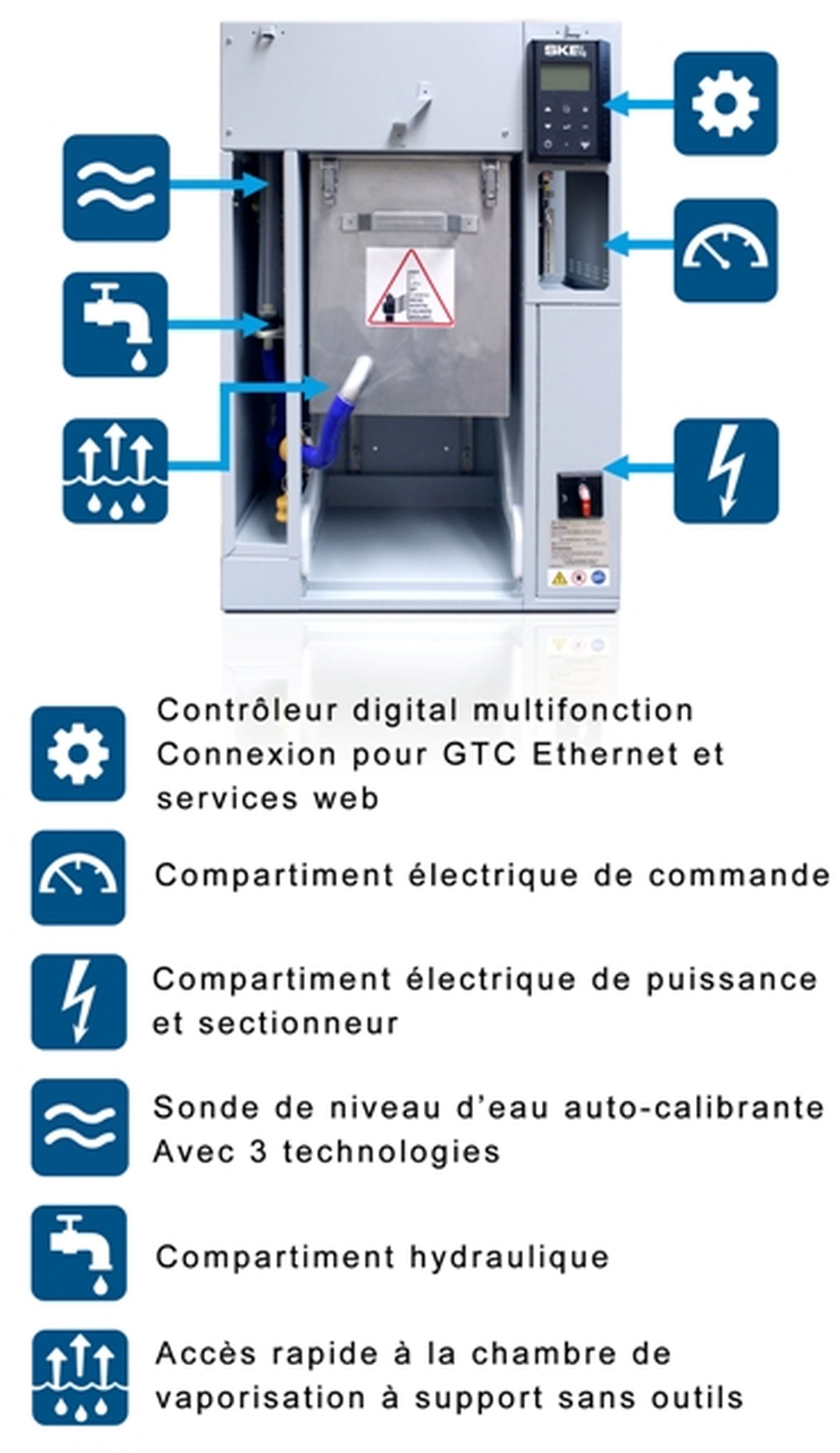 L’humidificateur électrique SKE4 génere de la vapeur d'eau pure, stérile et sans odeur.