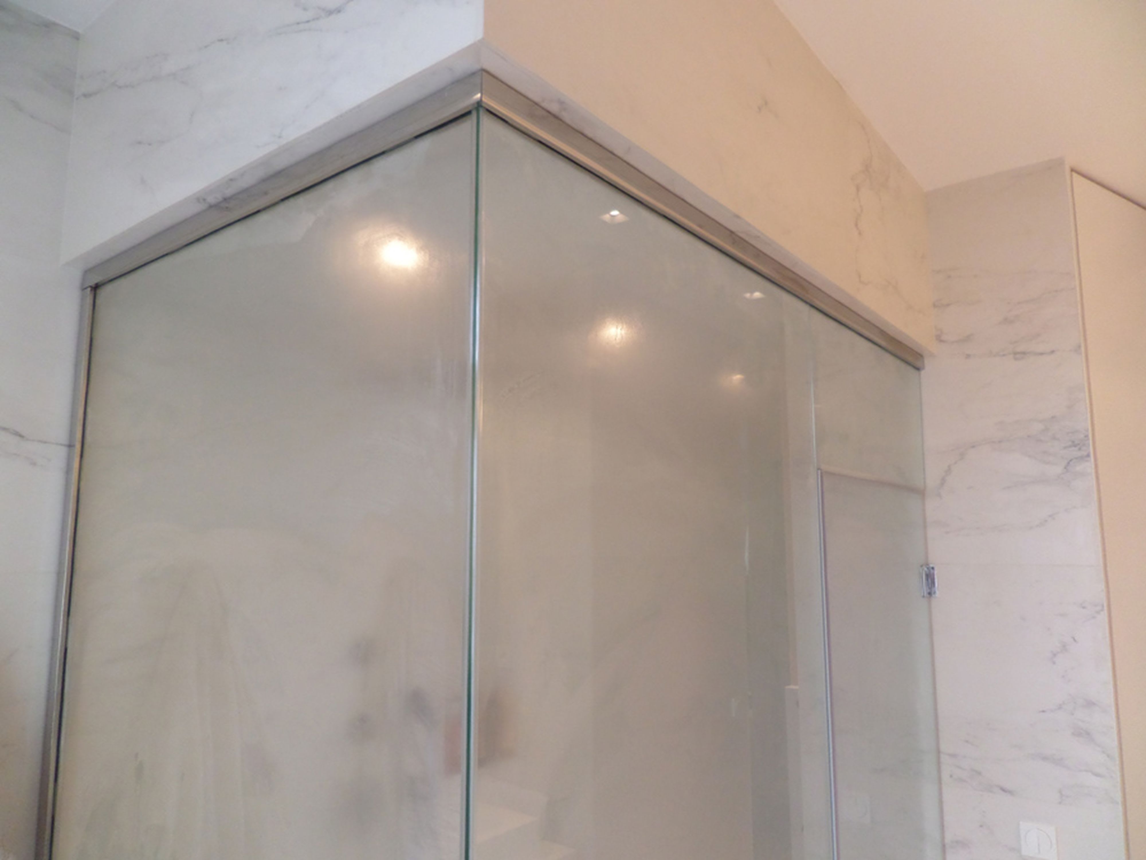Parois en verre avec profilé périmétrique en aluminium (standard), ou INOX satiné, ou INOX brillant