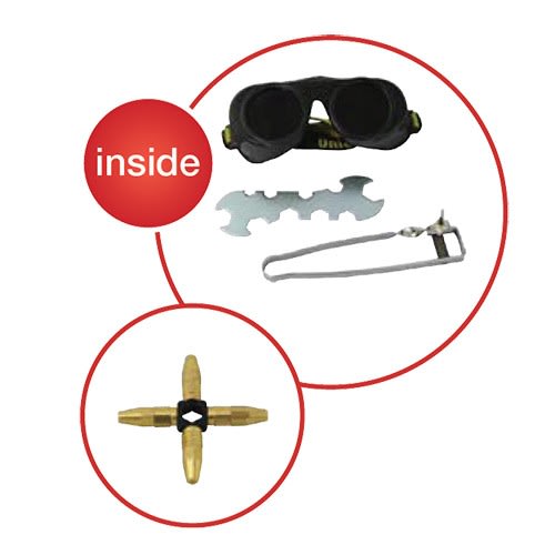 Le Kit MINIFLAME est un kit de brasage professionnel, indispensable pour obtenir des soudures à haute performance. Le kit est compact, puissant et efficace, il est particulièrement adapté aux applications de soudage de travaux de précision. Le Kit comprend : 1 x Bouteille B-FLAME de 1 Litre 1 x Bouteille G-OXYGEN - 1 litre - 110 bars - Connexion Valve m12x1 1 x Réducteur - Régulateur de pression de gaz B-FLAME 1 x Réducteur - Régulateur de pression d’oxygène 1 x Chalumeau avec robinets de réglage, vannes à double protection pour oxygène et gaz, tuyaux raccordés de 2 mètres et lance avec buse 160 litre/h 1 x Etoile de 4 buses de brasure de 63, 100, 250 et 315 litre/h 1 x Lunettes de protection 1 x Clé multi-usage 1 x Allumeur Température de flamme : jusqu’à 2 900°C/5 250°F
