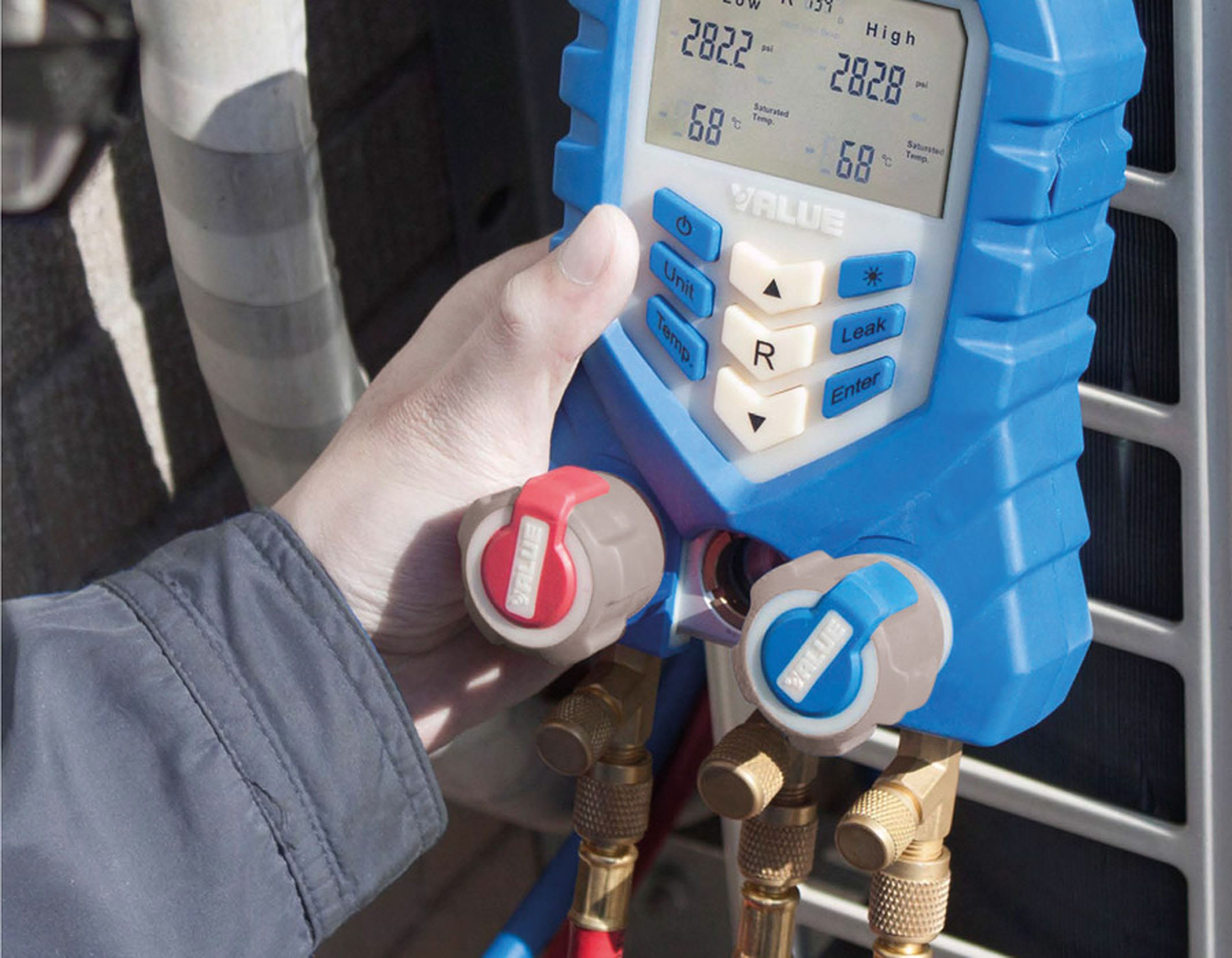 Le manometre digital électronique VALUE TF-VDG-1 convient pour la détection de plus de 40 réfrigérants, dont R32, R744 et R1234yf.