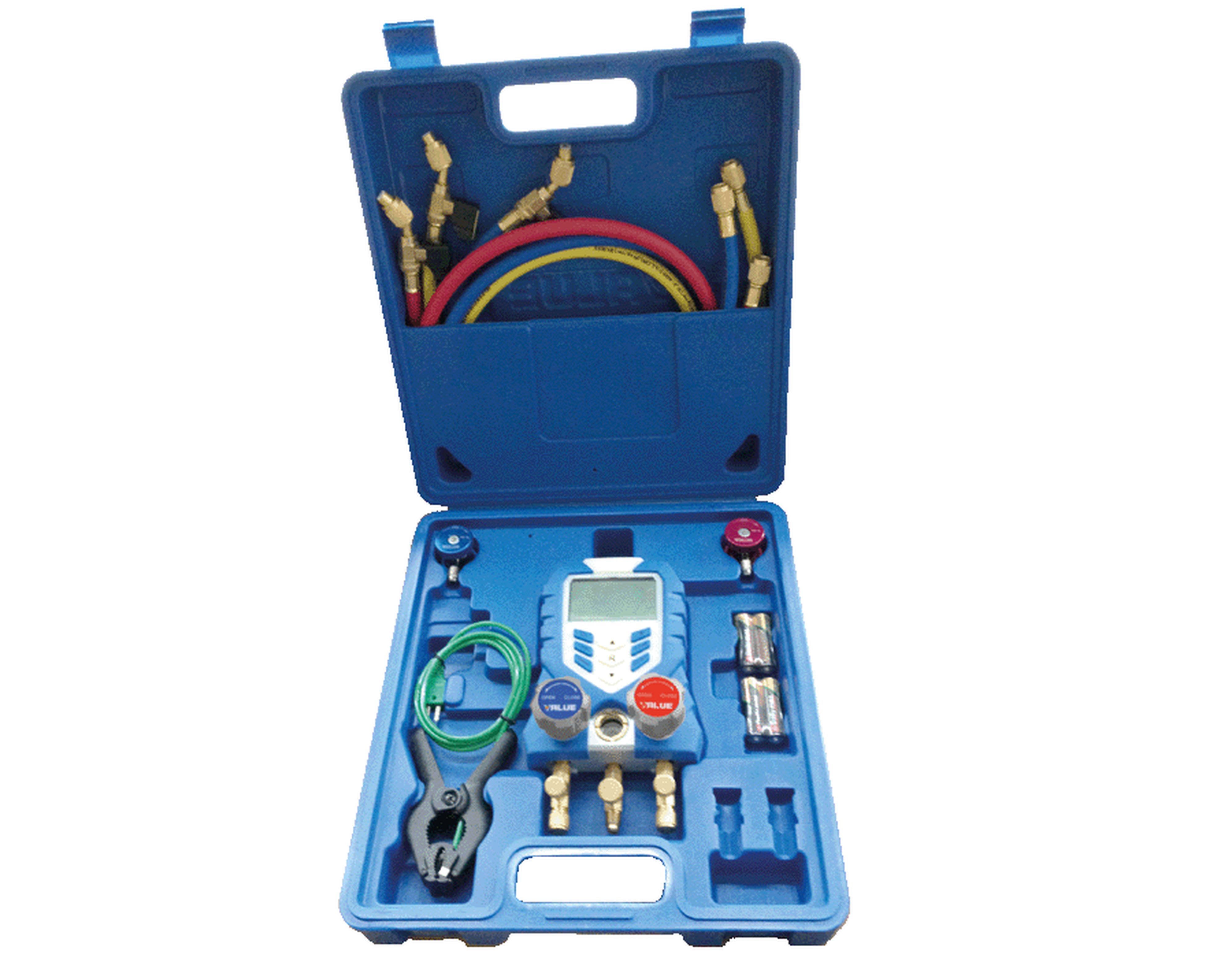 Manomètre électronique en coffret avec pince de prise de température et coupleurs automobiles 1/4" M - VALUE
