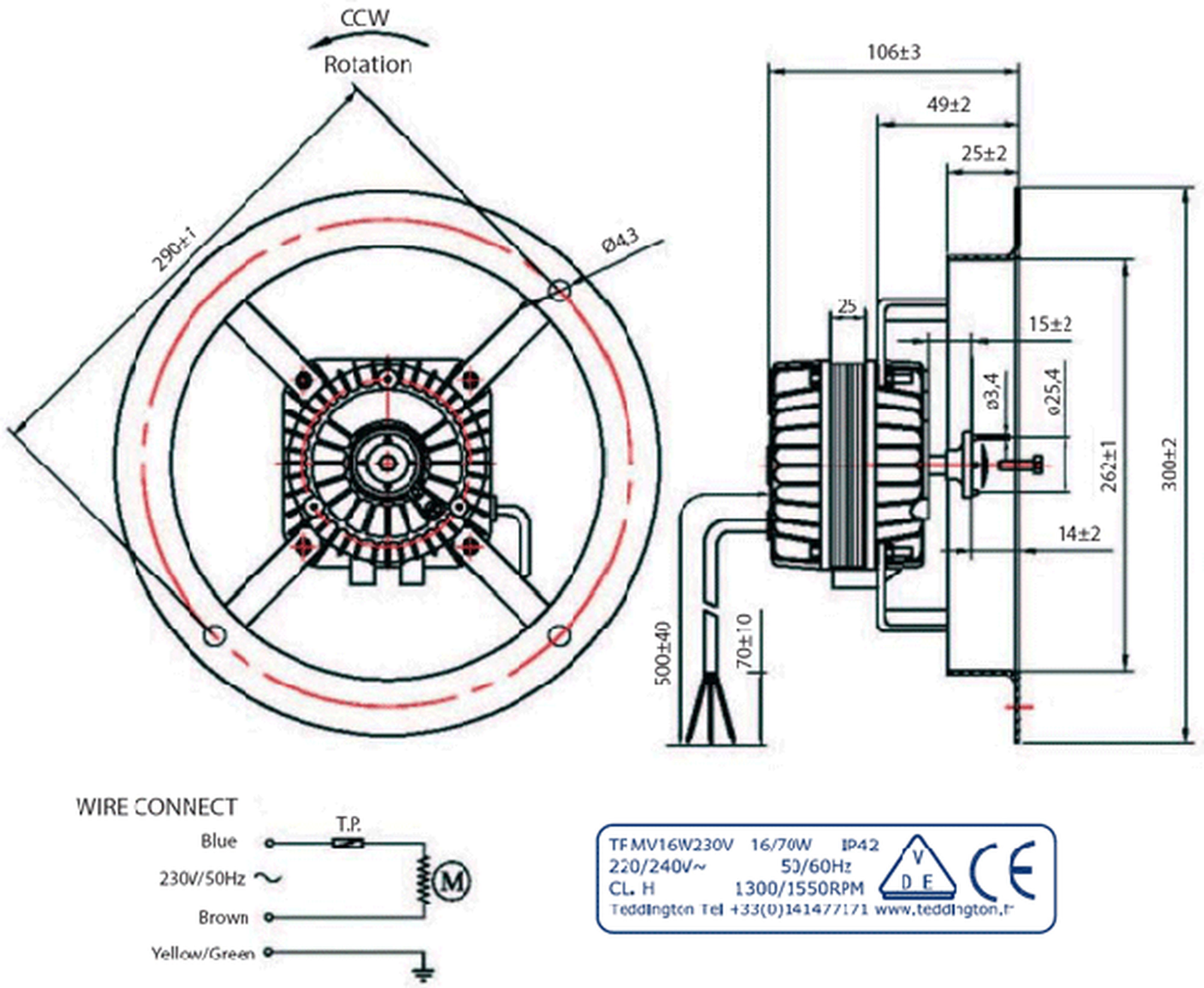 Teddington - Moteur ventilateur aspirant 16W 230V avec Hélice Ø250mm - TF-MV16W250A-WBI