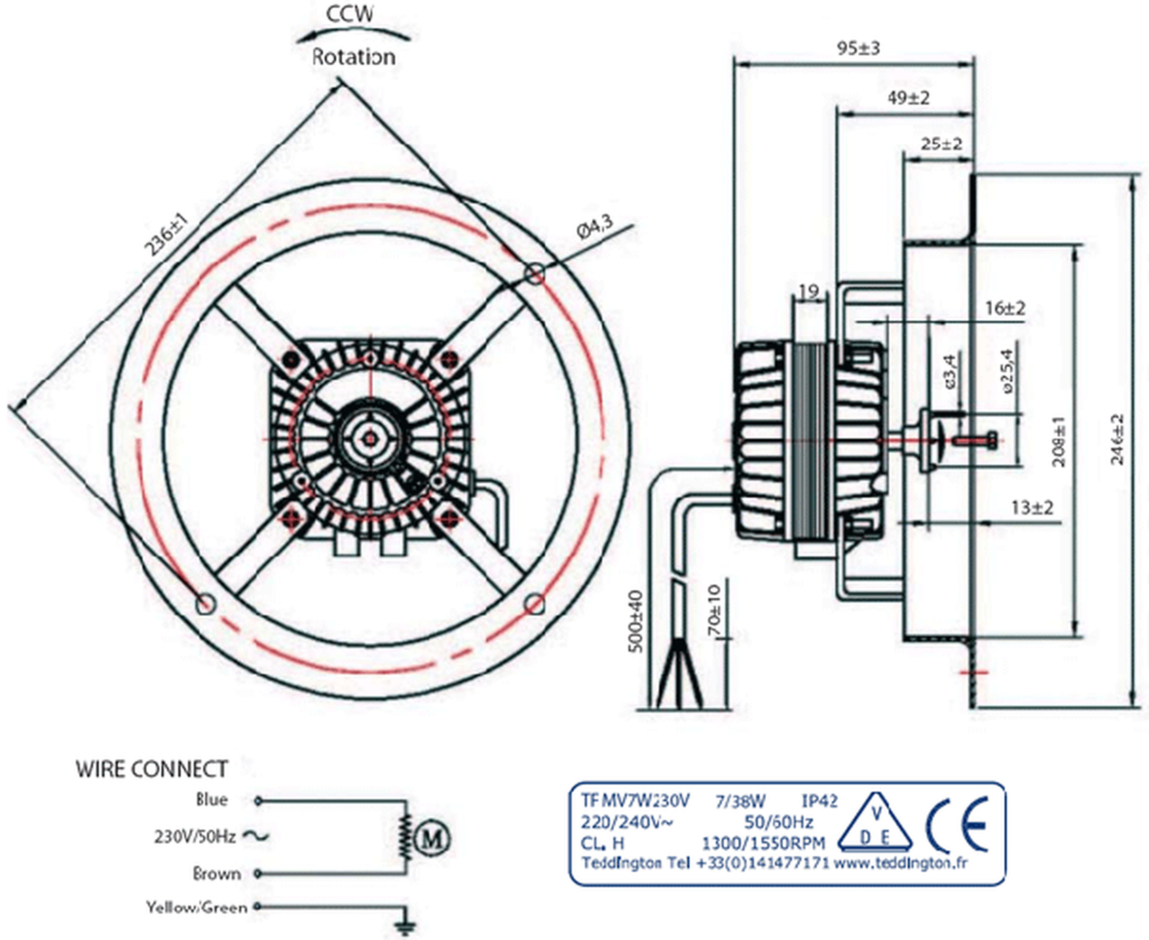 Moteur ventilateur aspirant 7W 230V avec Hélice Ø200mm - 408 m3/h - TEDDINGTON