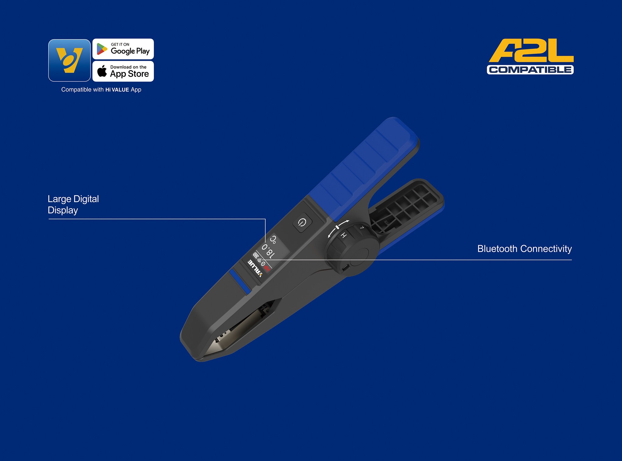· La connectivité Bluetooth via l'application Hi VALUE permet le contrôle à distance et la mesure des données en temps réel. · Grand écran numérique avec un taux de rafraîchissement élevé pour une lecture instantanée et sans décalage des données. · Compatible avec les tuyaux de grand diamètre, de 19 mm à 105 mm. · Plage de mesure de -40 °C à 125 °C, idéal pour les systèmes à haute et basse température.