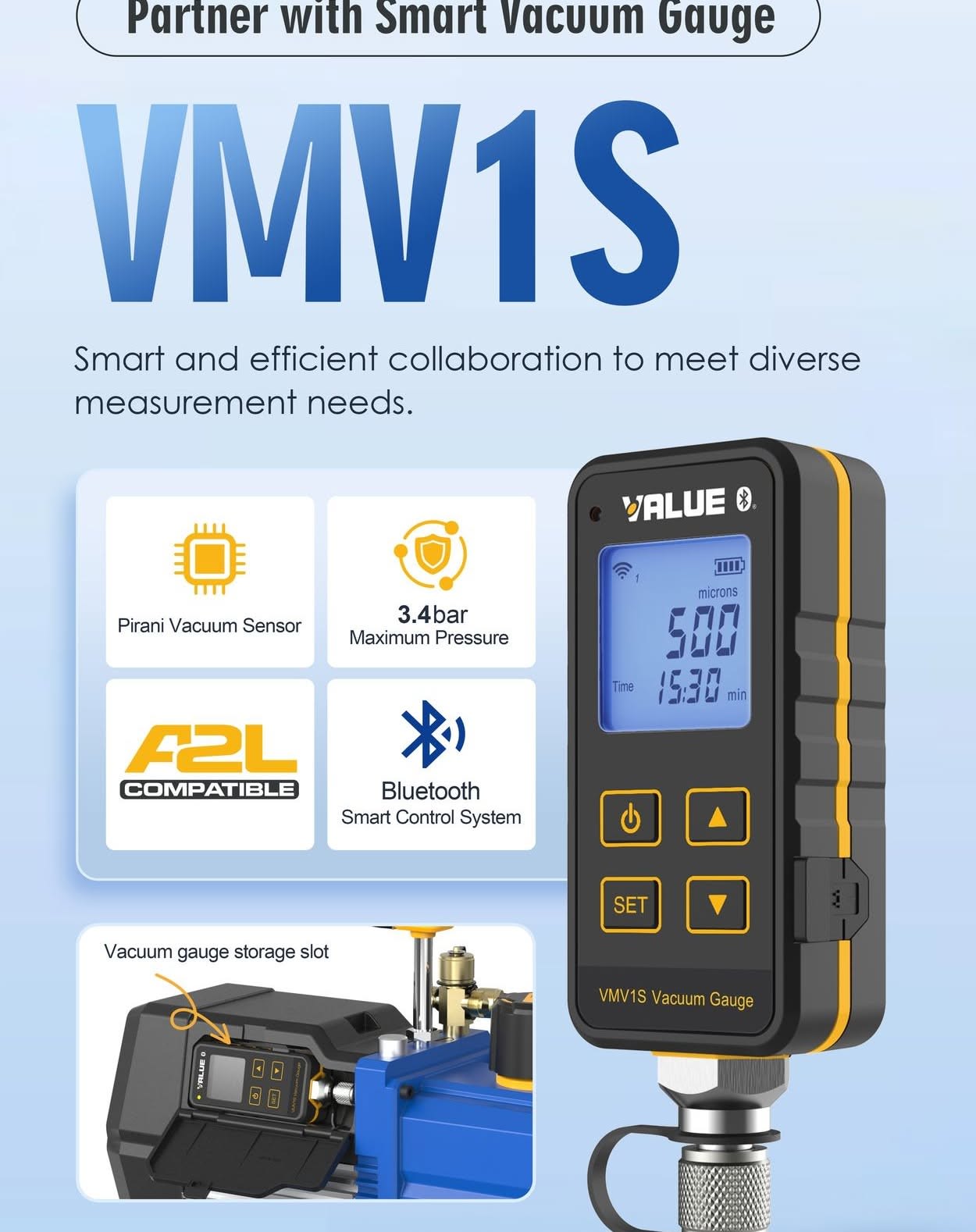 ✅ Avec l'application Hi VALUE, effectuez à distance le tirage au vide, préréglez les niveaux de vide cibles et le temps de maintien du vide. Générez des rapports de données professionnels directement depuis votre mobile. ✅ Contrôle de l'huile en 60 secondes : test en une seule touche pour déterminer si l'huile de la pompe doit être remplacée. Vous gagnez du temps et réduisez les coûts de maintenance. ✅ Appairage flexible : Fonctionne de manière transparente avec le vacuomètre intelligent Bluetooth VALUE TF-VMV1S pour davantage de tâches de mesure du vide.