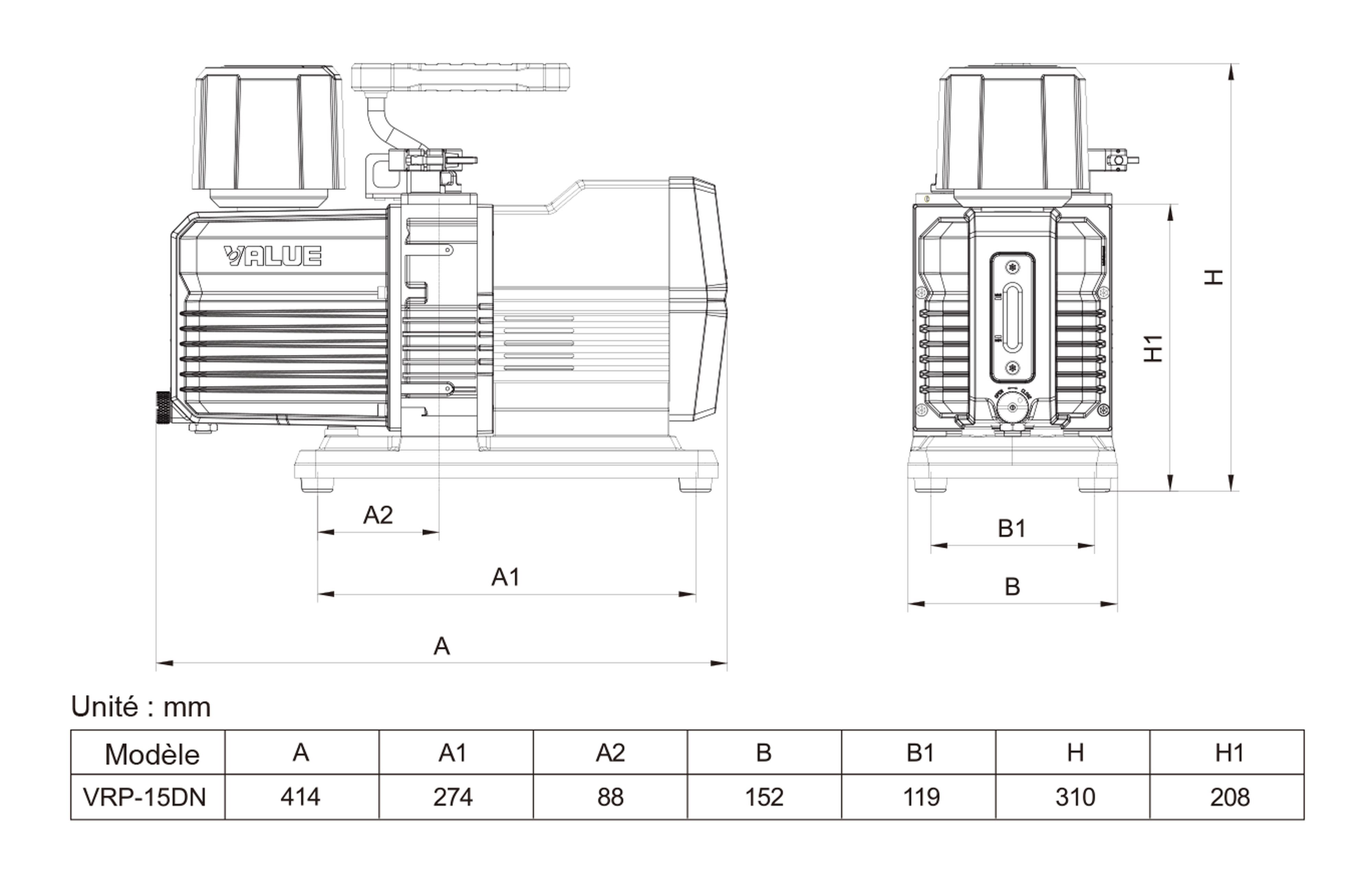 La pompe a vide VALUE TF-VRP 15DN est une pompe a vide à deux étages compatible avec le réfrigérant NH3(ammoniac).