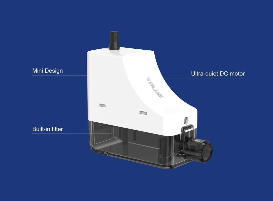 La pompe VALUE-L1 est conçue s'installer dans un coude de goulotte de climatisation. La pompe de relevage VALUE-L1 est une pompe à diaphragme, elle est extrêmement silencieuse grâce à la technologie de moteur DC, et à ses amortisseurs de vibrations exclusifs. Fiable, simple à installer et à entretenir, la pompe de relevage des condensats VALUE-L1 est l'alliée idéal des climaticiens.