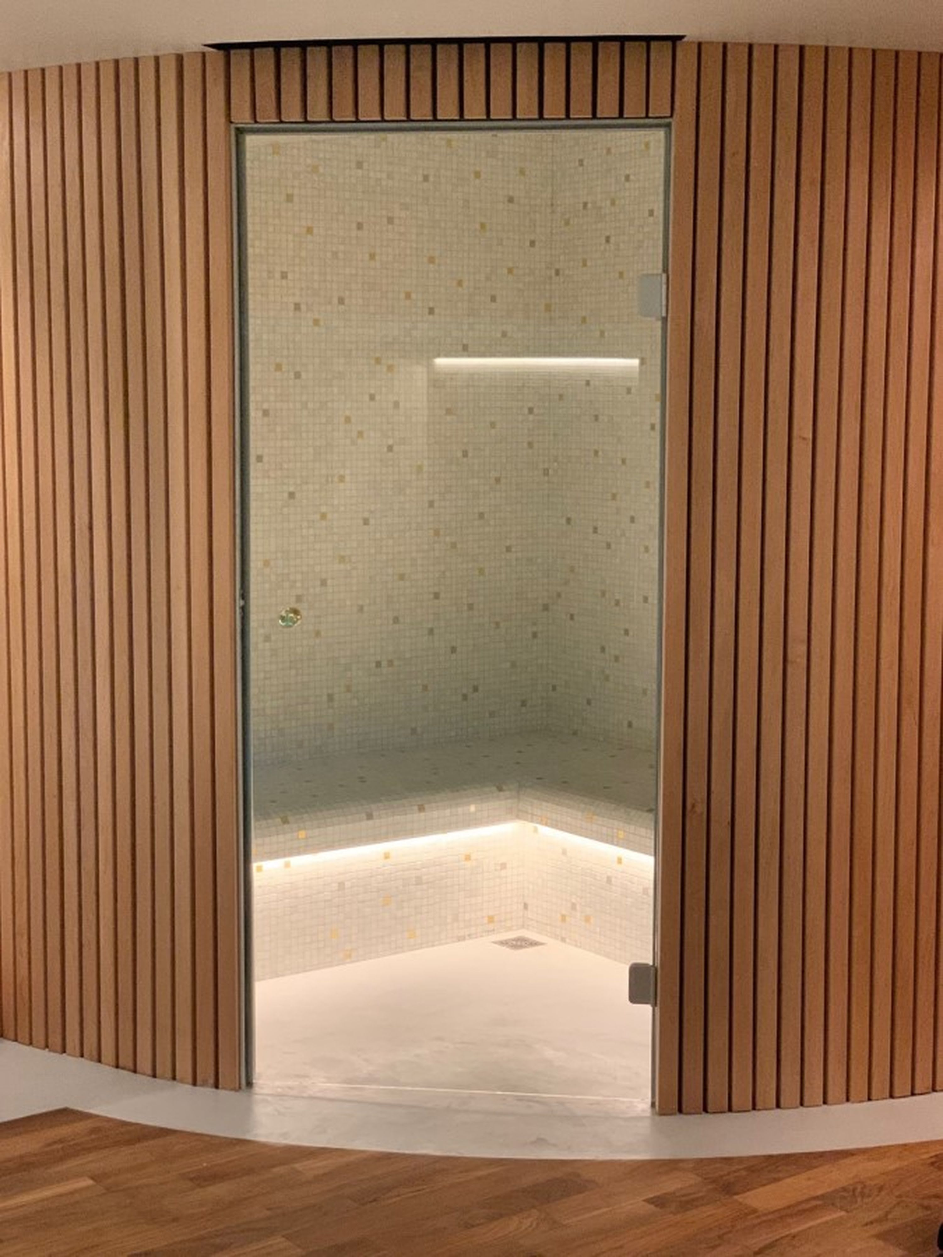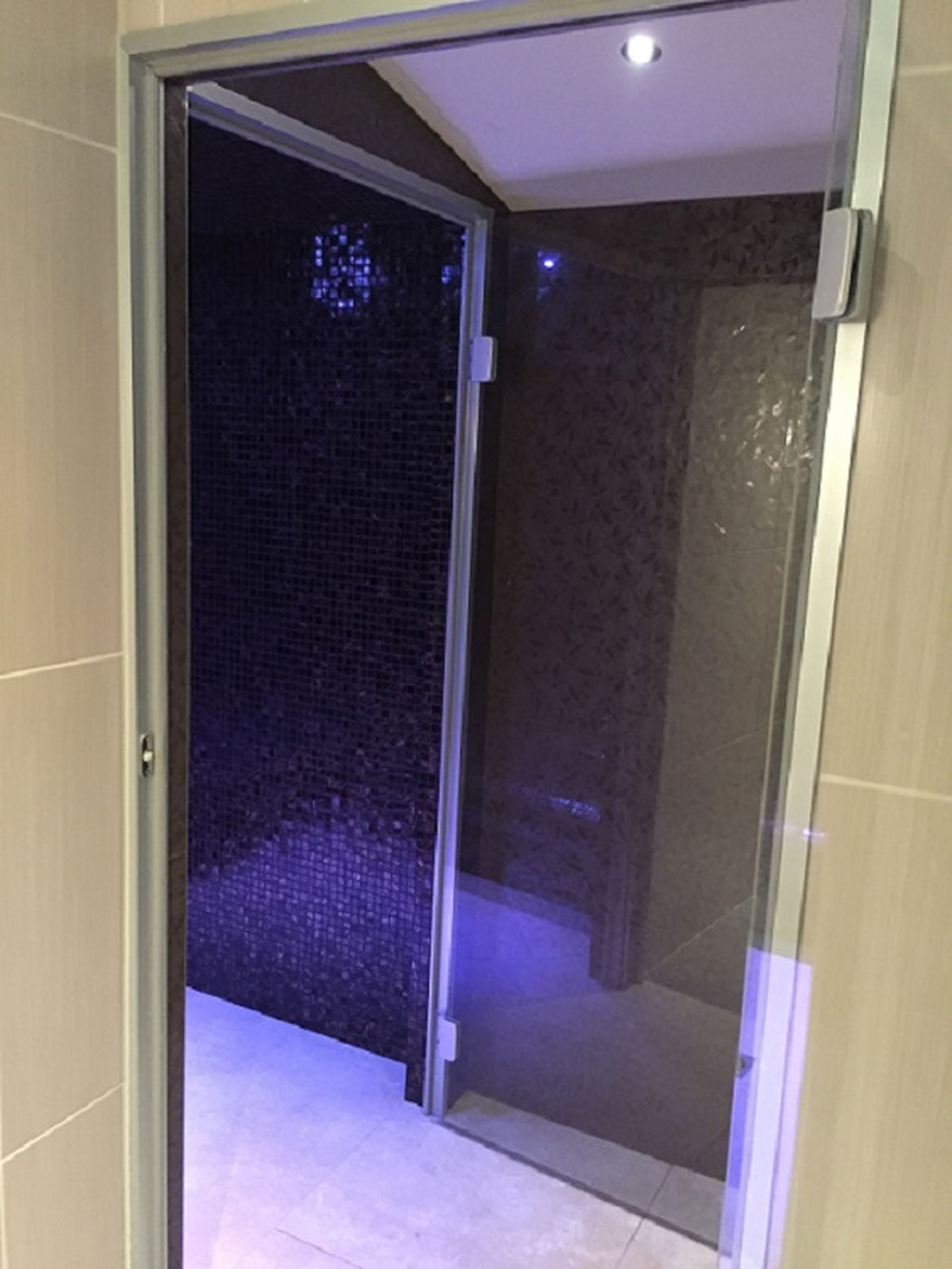 Porte en verre pour hammam avec bâti sur mesure, largeur 900 mm (+/- 50 mm), hauteur 1900 mm - TEDDINGTON