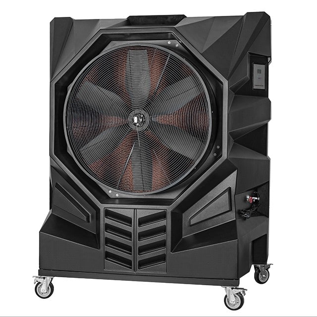 Le refroidisseur évaporatif portable est un appareils qui refroidit l'air en utilisant l'évaporation naturelle de l'eau. L'eau est diffusée à travers un panneau alvéolé, l'air chaud qui passe à travers l'eau cède sa chaleur et se refroidit. Grâce à la télécommande, il est possible de régler son fonctionnement, et sa conception robuste permet une utilisation industrielle et professionnelle. AMBCOOLER 23000 est équipé d'une lampe UV qui désinfecte l'eau en permanence.