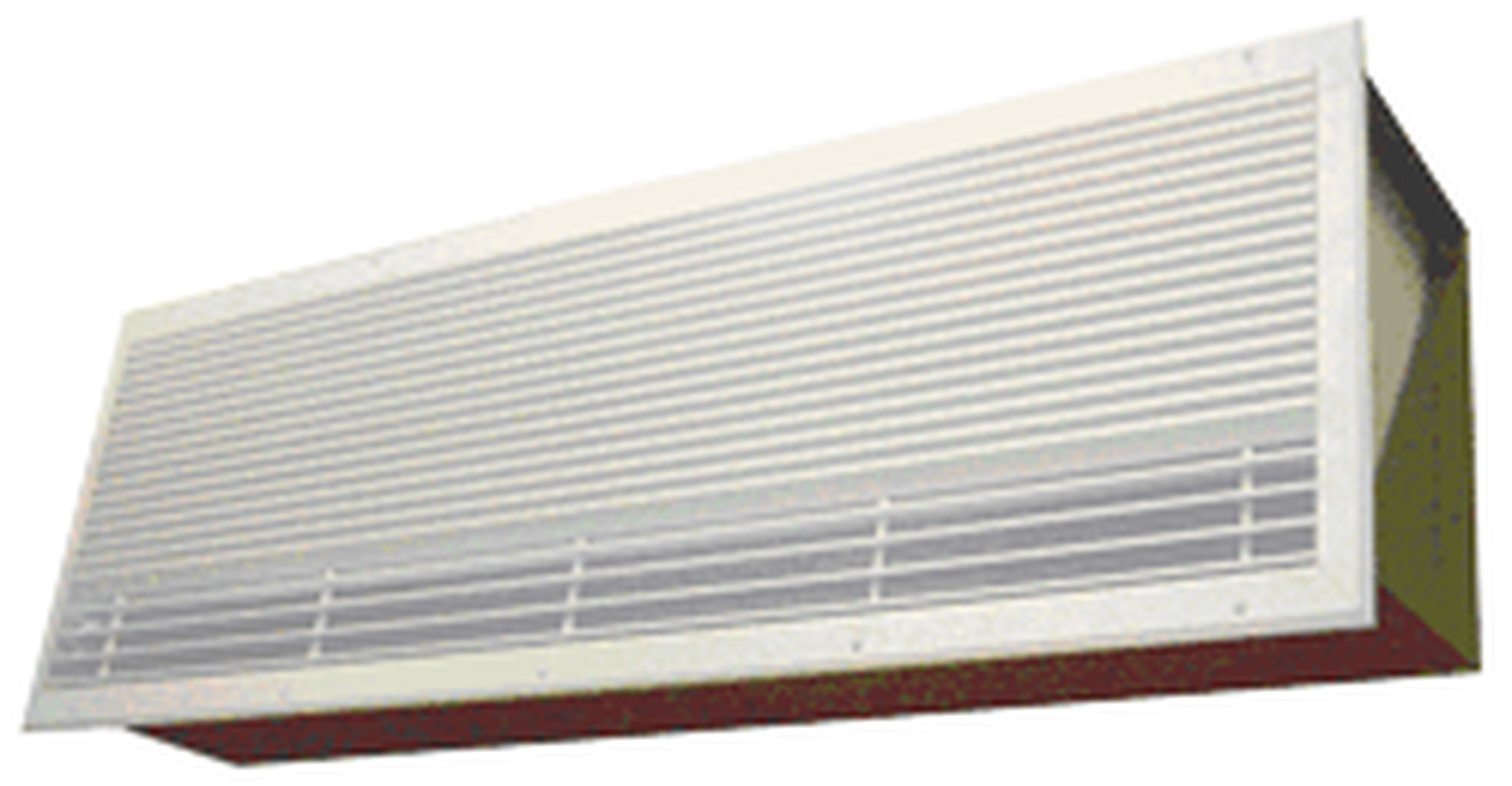 Le rideau d'air chaud a eau chaude encastrable de 2m Compact qui n'a besoin que de 23cm pour etre encastré.