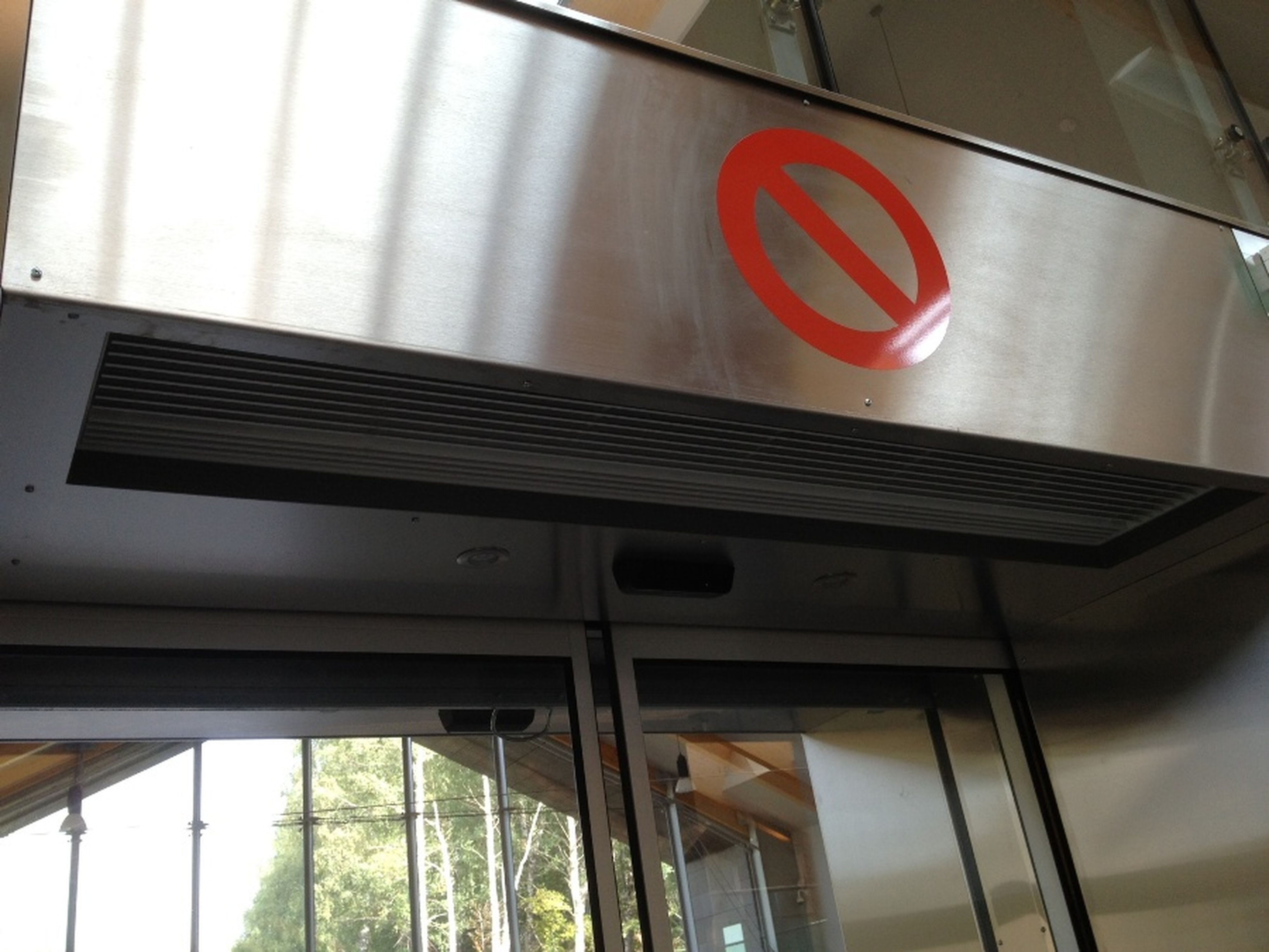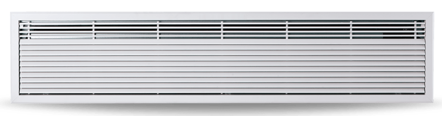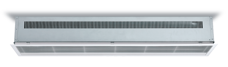 Le rideau d'air chaud a eau chaude encastrable de 1m Compact qui n'a besoin que de 23cm pour etre encastré.
