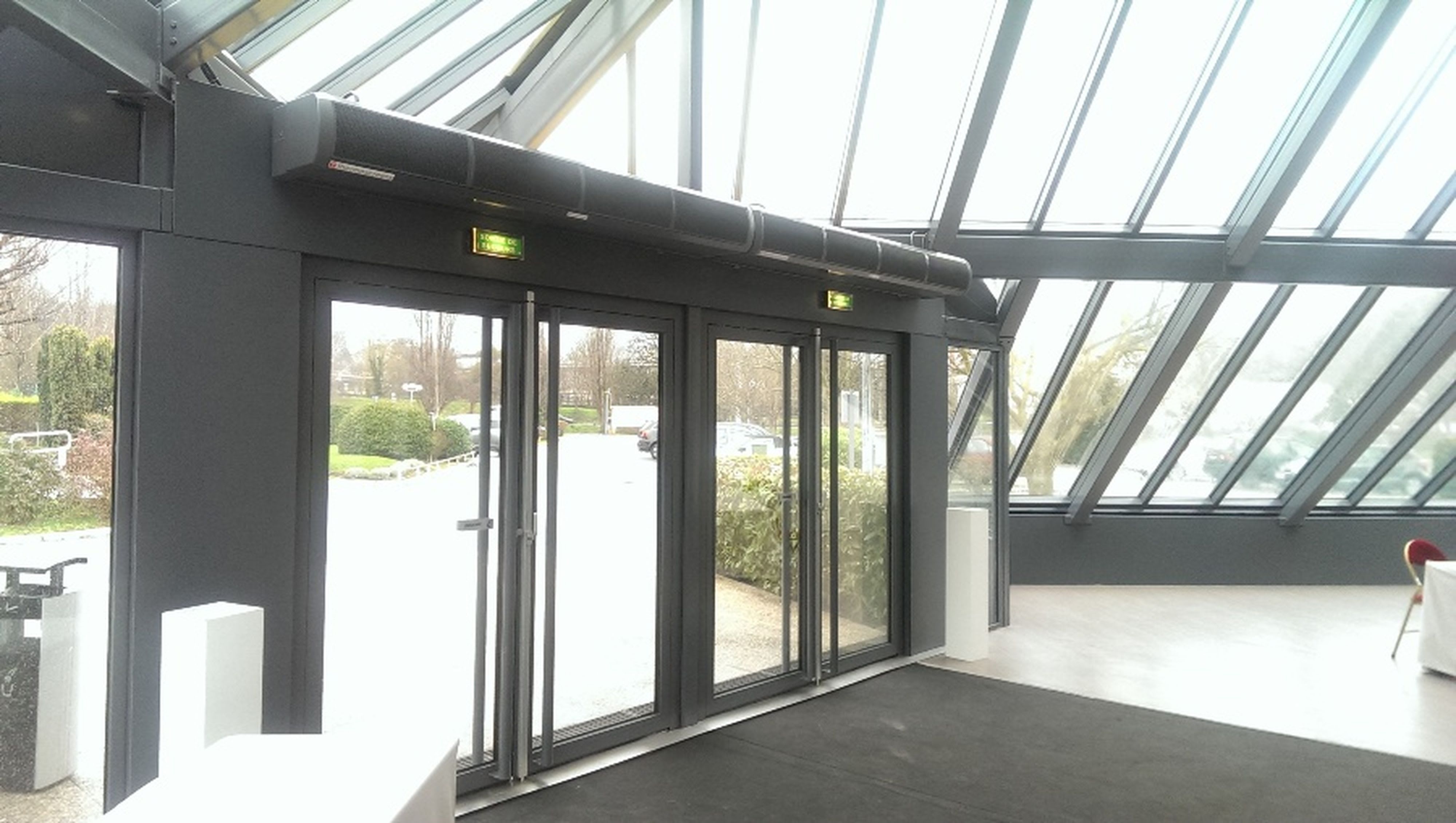 Le rideau d'air chaud a eau chaude de 1m ayant la possibilité d'une allure de ventilation silence.