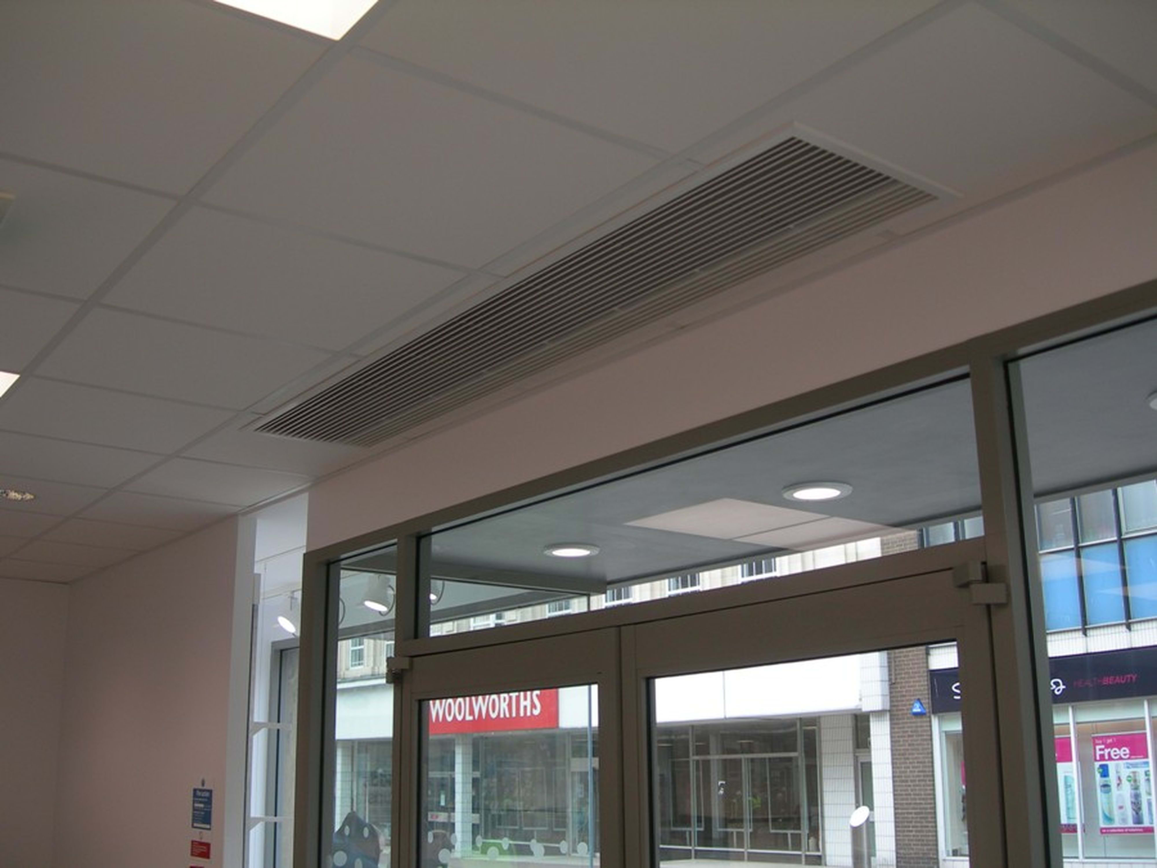 Le rideau d'air chaud électrique encastrable de 1m Compact qui n'a besoin que de 23cm pour etre encastré.