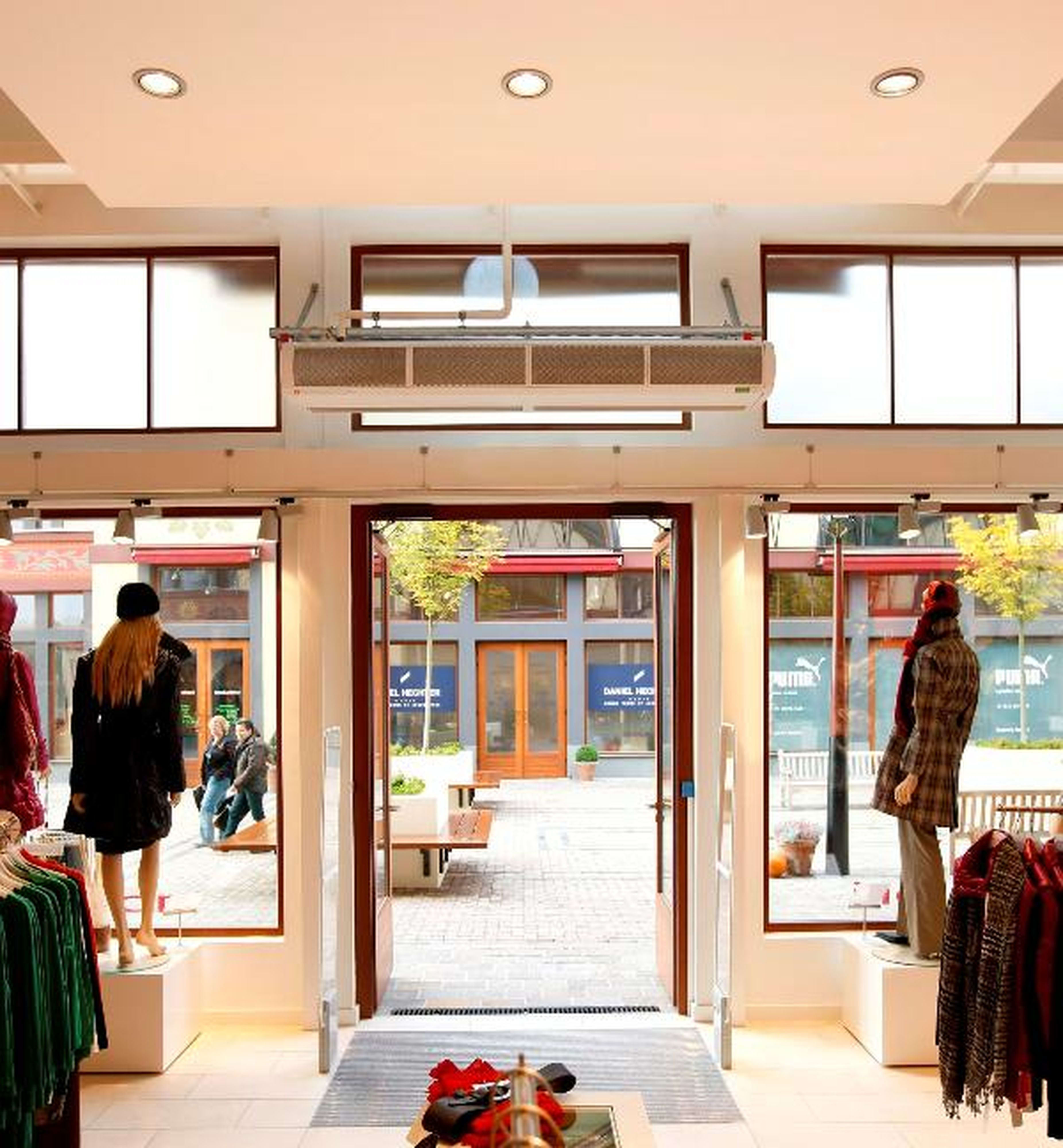 Le rideau d'air chaud électrique de 1m grande hauteur compact par ses 255mm d'épaisseur.