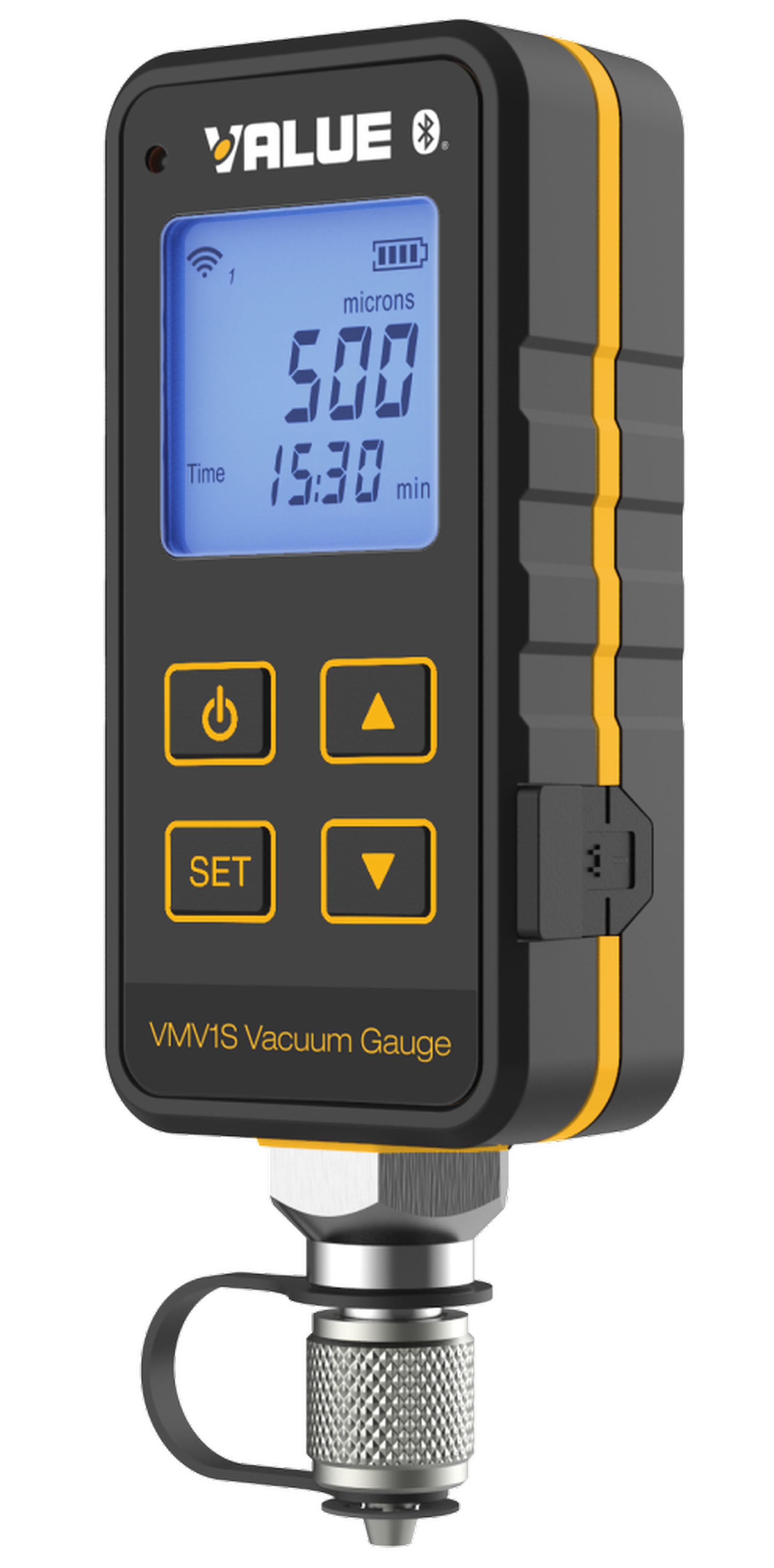 VMV1S utilise le capteur de vide Pirani de haute précision et haute protection pour mesurer avec exactitude le niveau de vide qui peut être transféré via un signal Bluetooth.