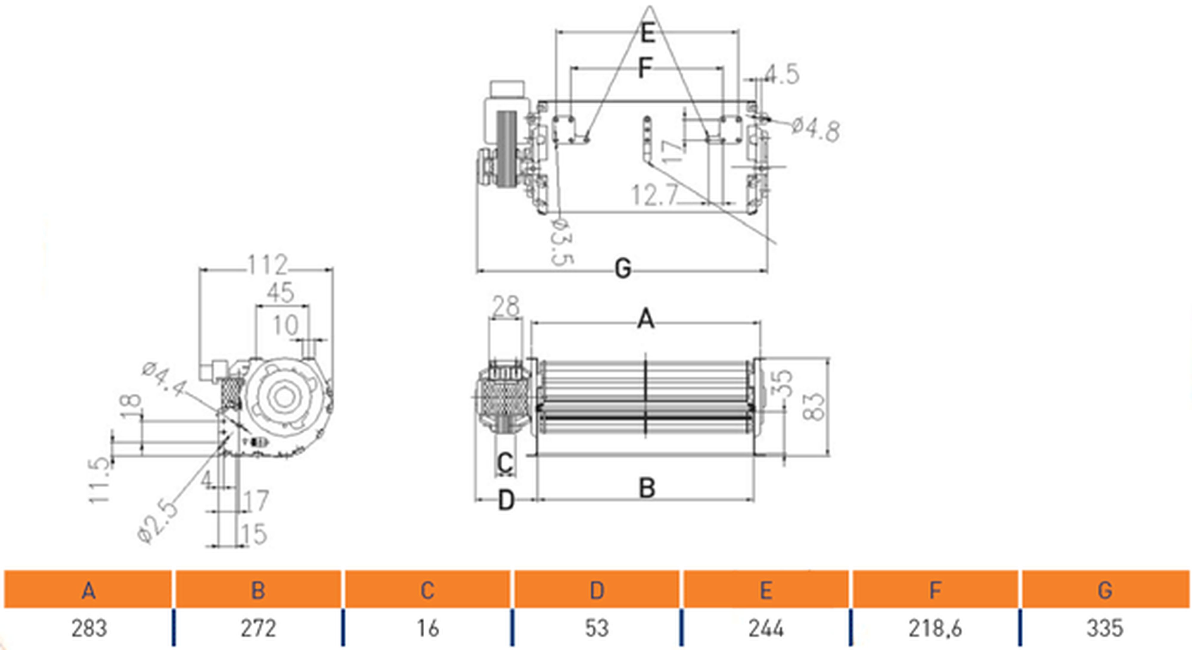 Ventilateur tangentiel 1 turbine longueur 270 mm - diam 60 mm - TEDDINGTON