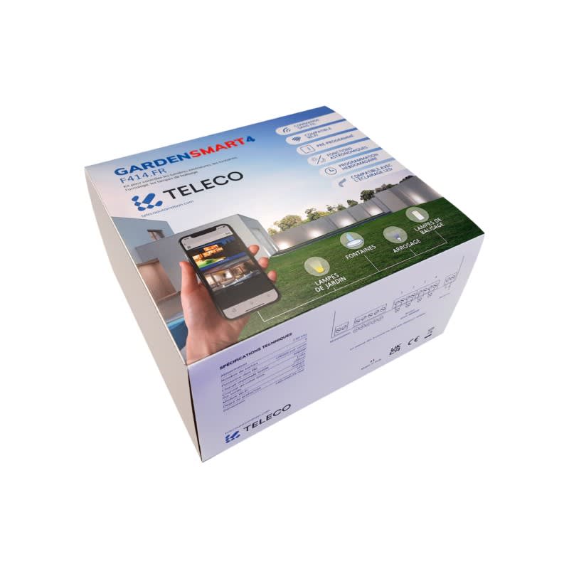 Teleco - Kit pre-programme 4 sorties 230V avec emetteur mural 4 canaux et Wi-Fi integree - GARDENSMART4