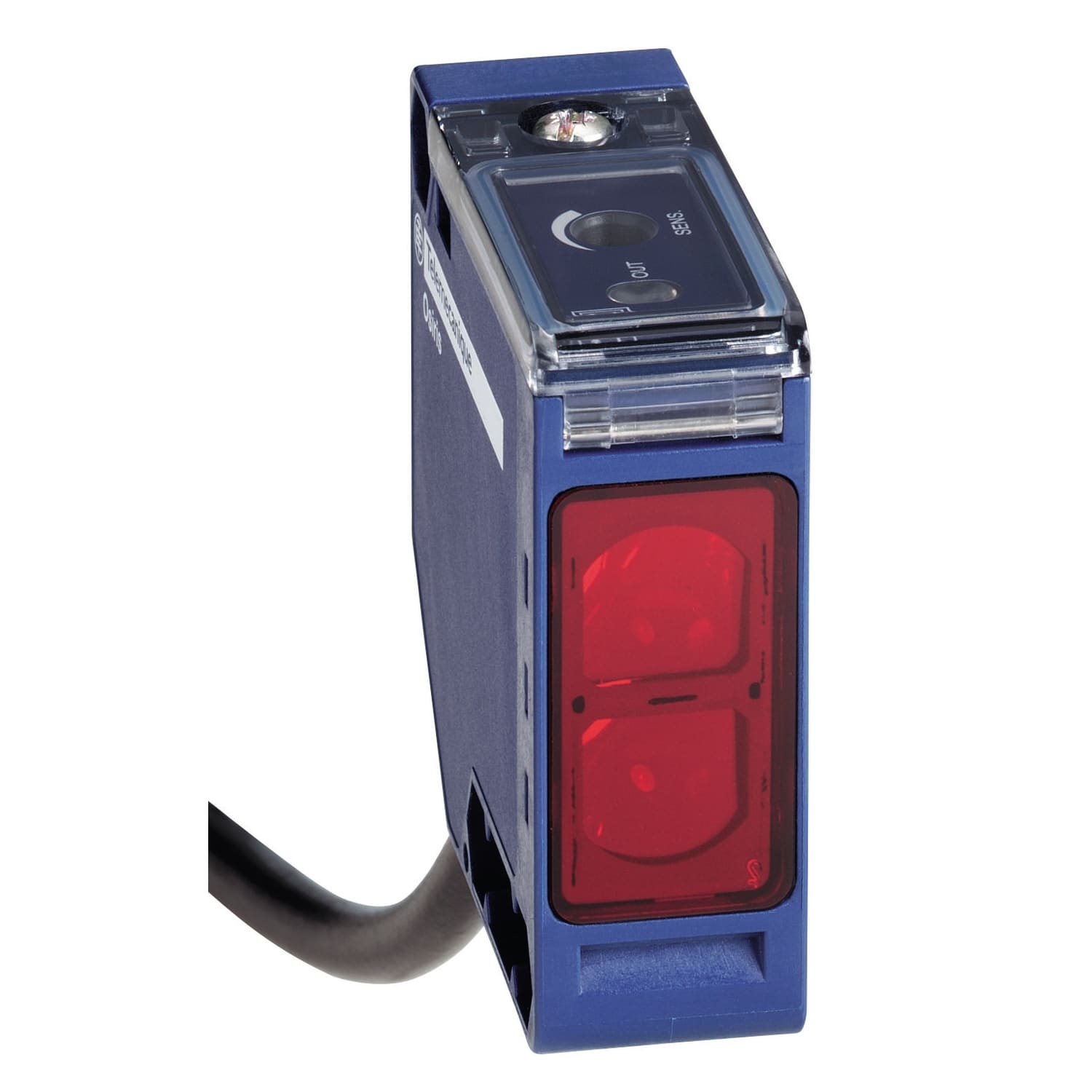Telemecanique Sensors OsiSense XU - détecteur photo-électrique polarisé - monomode - boîtier 50x50 - plastique - RED réflex polarisé - portée > 1?5m - sortie PNP - 1F - câble 3 fils - 2m - 12...24VCC