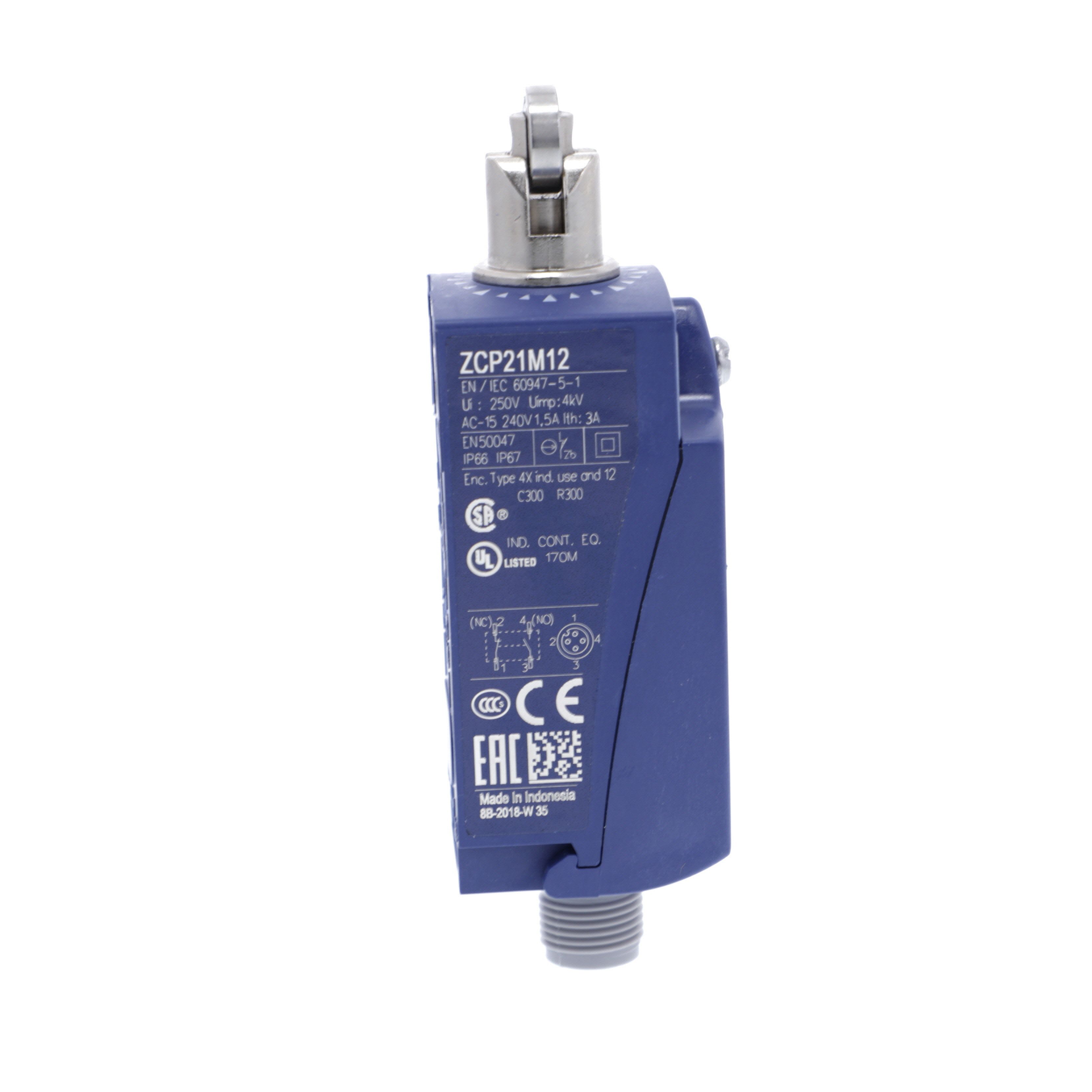 Telemecanique Sensors France - XCKP - ID Position - poussoir galet métal - 1NO+1NC - brusque - M12 - XCKP2102M12