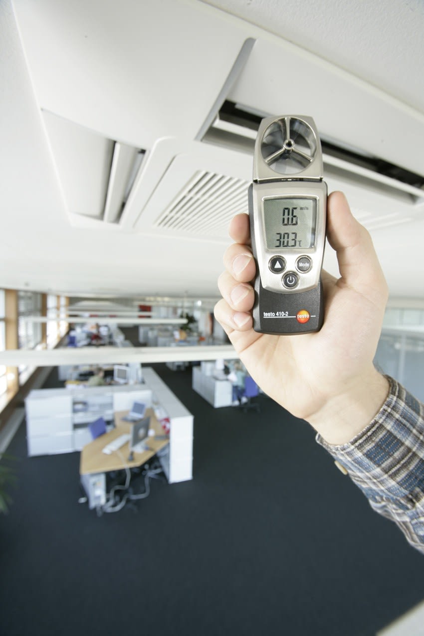 Le Testo 410-2 mesure non seulement la vitesse de l’air et la température, mais aussi l’humidité relative, pour un diagnostic climatique complet en un seul outil.
