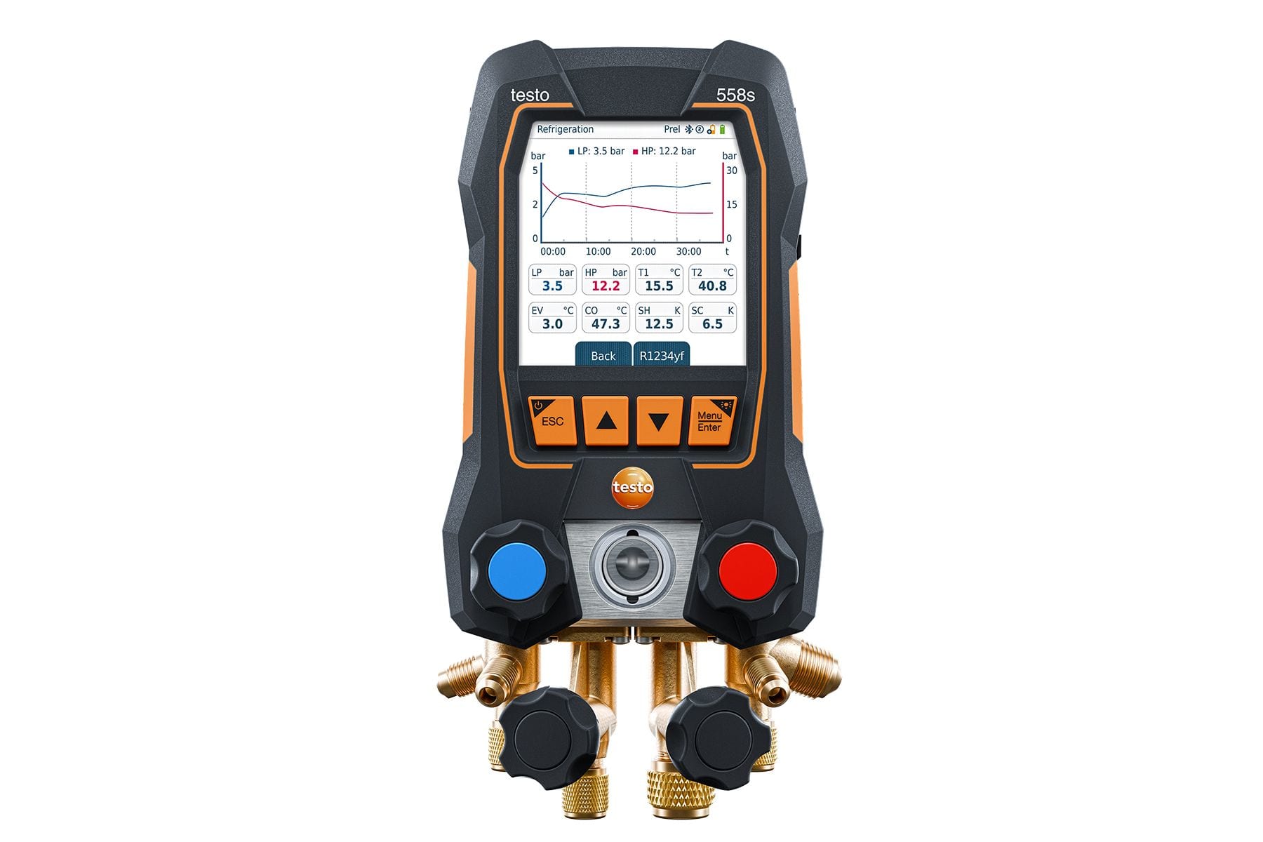 Le Testo 558s est un manifold digital 4‑voies avec écran tactile, pour tout mesurer sans smartphone.