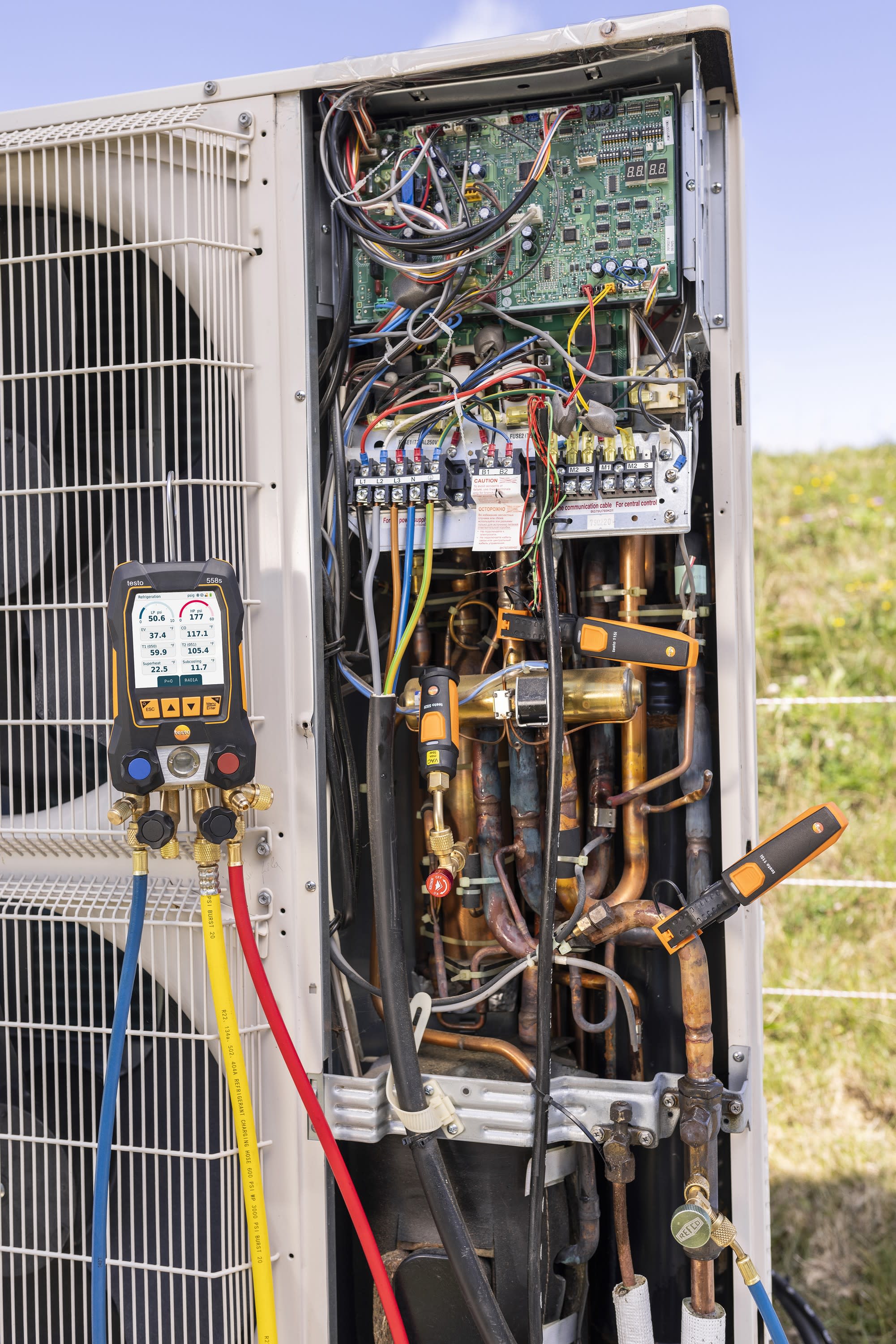 Le kit 558s offre un manifold digital 4‑voies avec écran tactile + sondes température et vide sans fil.