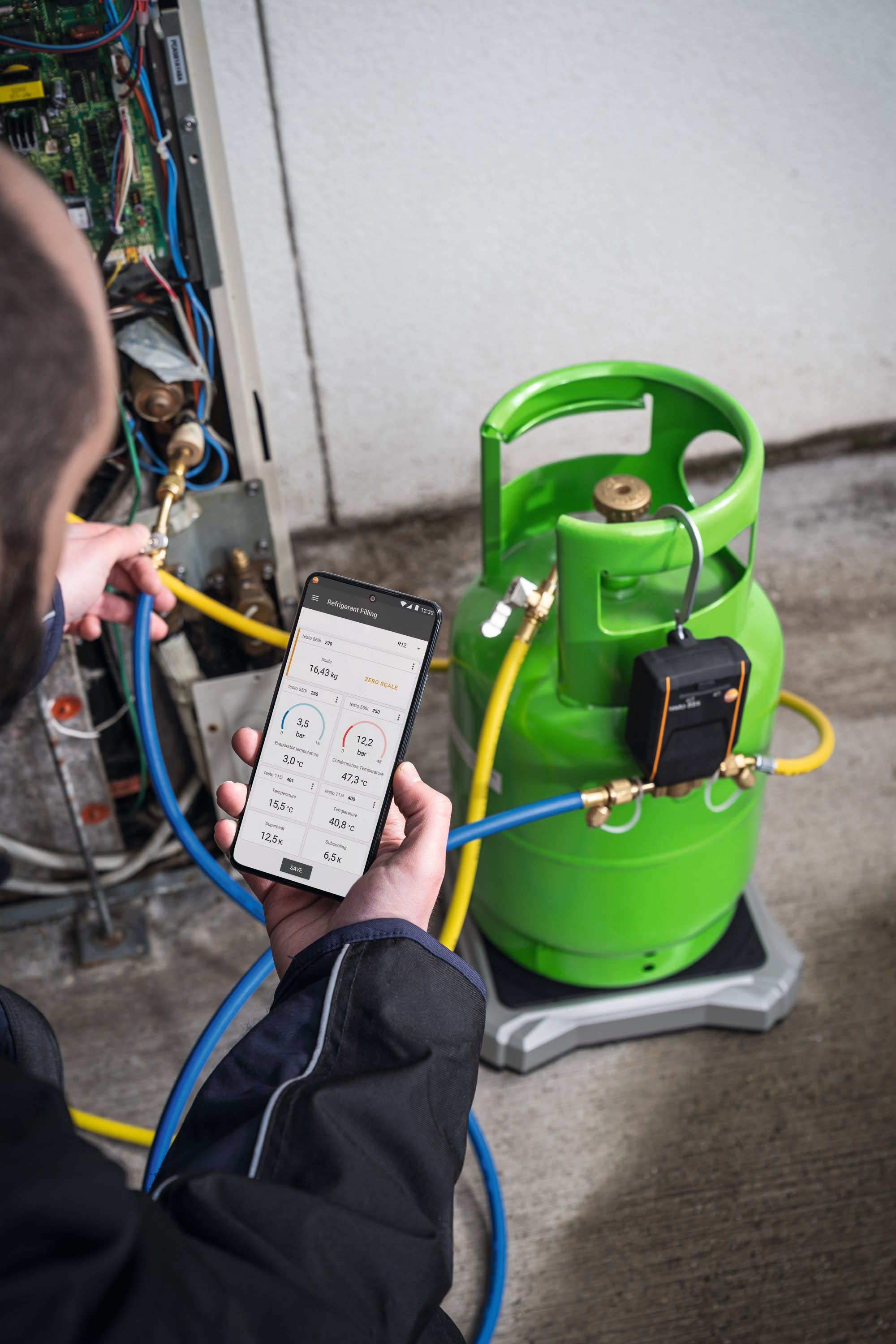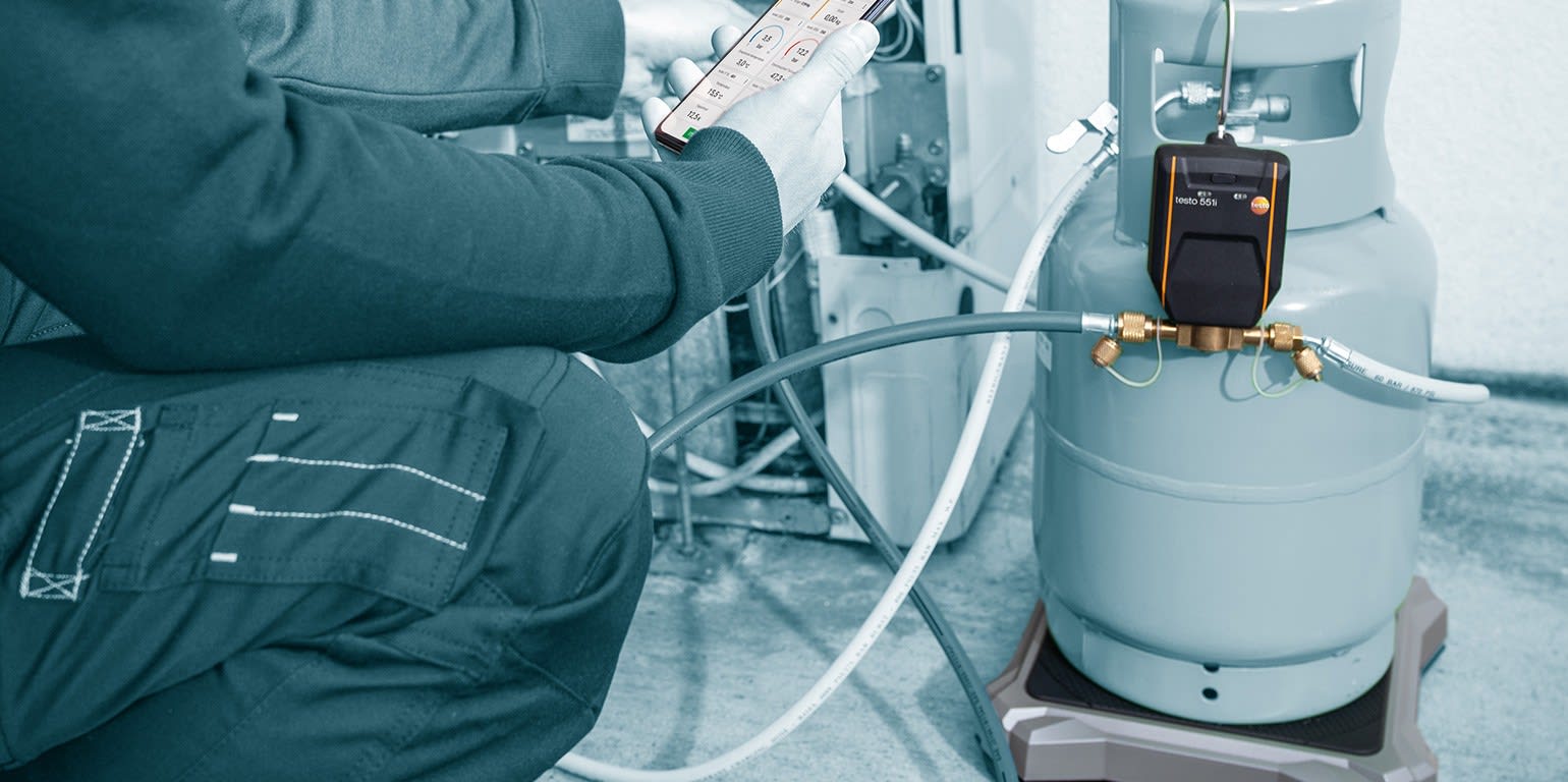 Set balance de fluide frigorigène testo 560i et vanne automatique en sacoche. La balance testo 560i vous fait gagner du temps et vous facilite la vie grâce à la charge automatique d’installations frigorifiques en fonction de la valeur cible