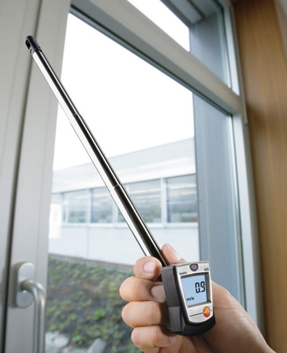 testo 405 - Anémomètre à fil chaud. Mesurez la vitesse de l'air, débit volumétrique et température ambiante. Convient pour des mesures de contrôle rapides dans les canalisations d'air et pour la mesure de la vitesse de l'air dans les pièces