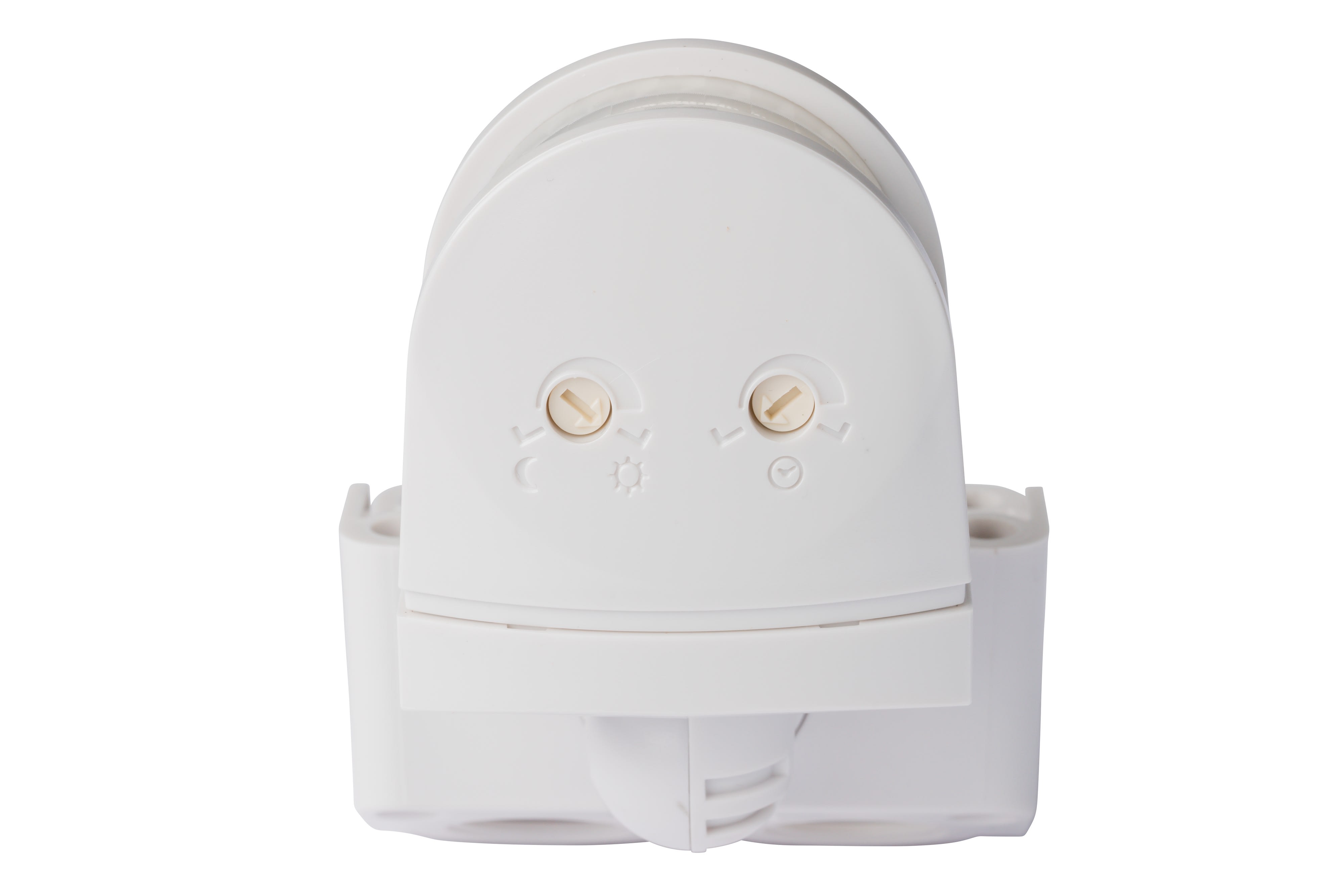 Détecteur de mouvement theLeda B blanc. Angle de détection 180° pour une portée de 12m à 2.5 m de hauteur. Sortie de commutation supplémentaire pour éclairage. Détecteur orientable + ou – 90° à l’horizontale et inclinable de 90° vers le bas. IP55