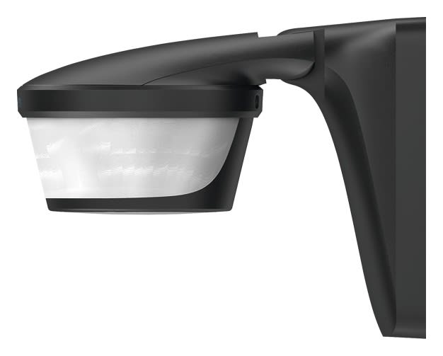Détecteur de mouvement noir. Angle de détection 300°. IP55. Montage mural et au plafond. Possibilité de limiter la zone de détection grâce aux segments fournis.Fonction de test pour contrôler la zone de détection. Entretoise pour fixation murale inclus.