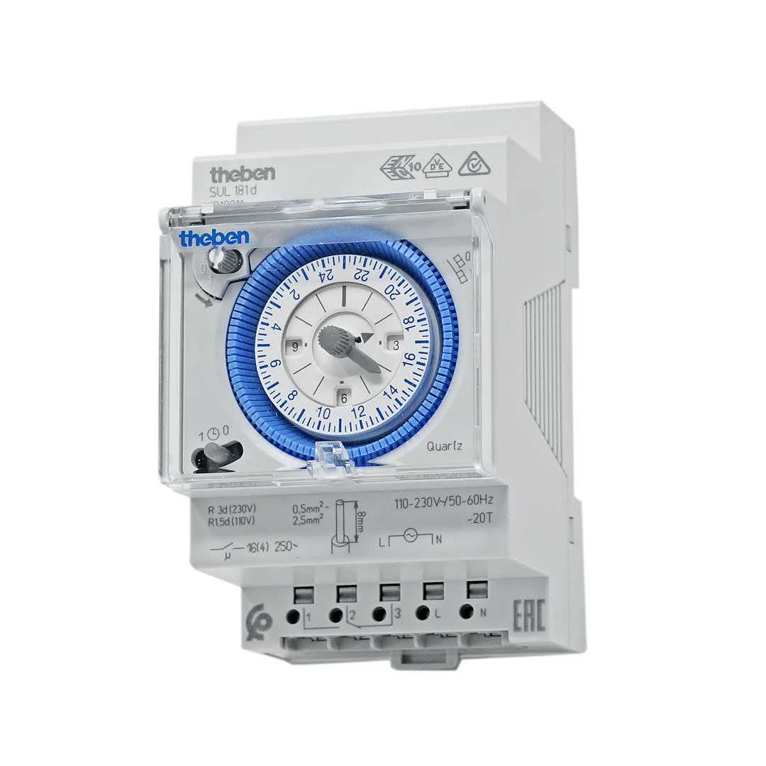 Horloge programmable analogique 1 canal programmation 24h. Forçage manuel : AUTO/ON permanent/ OFF permanent. Réserve de marche 200h. Minimum de commutation 15 minutes. Contact inverseur 16A/230V. Raccordement sur bornes automatiques.