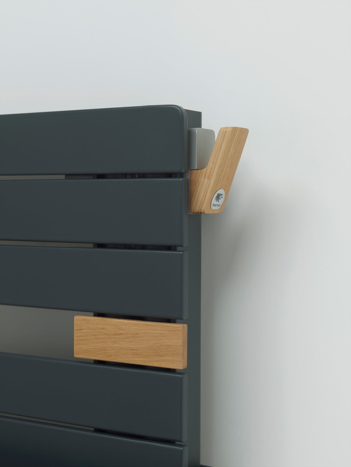 Accessoire sèche-serviette Patère chêne clair aimantée. Compatible avec Allure, Symphonik, Toscane et Riviera.