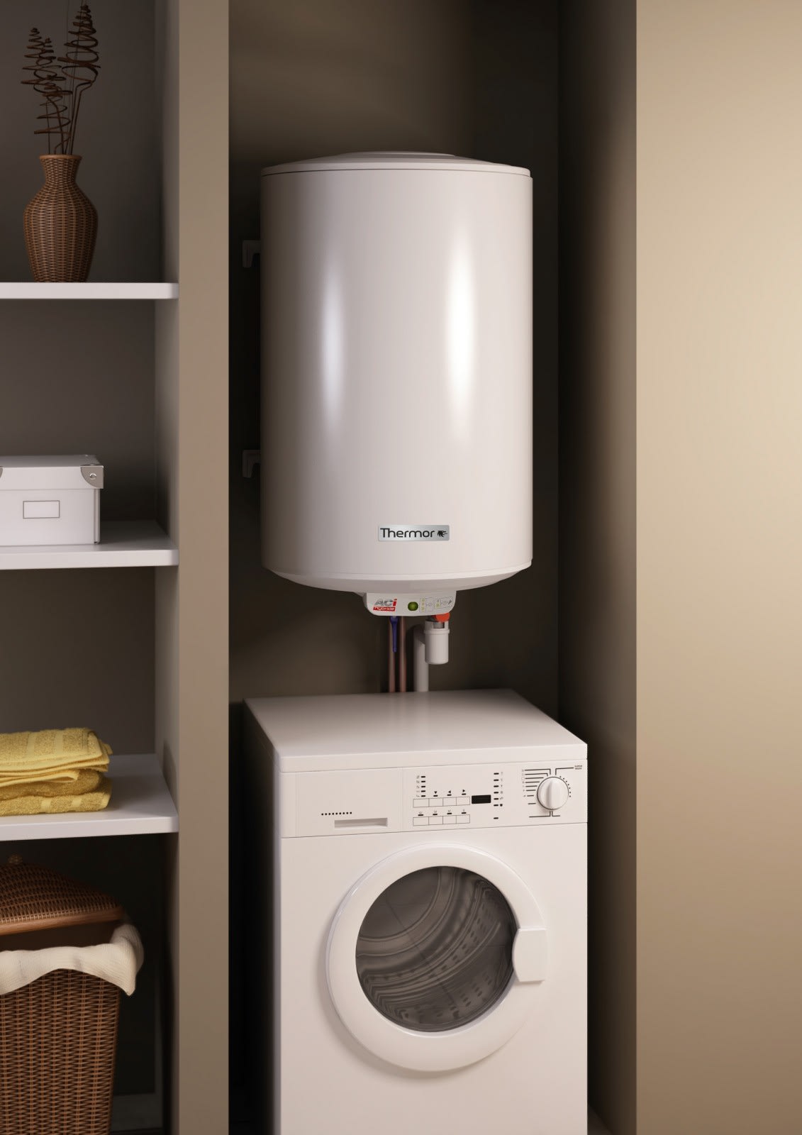Disponible en 3 formats: vertical mural (étroit et compact), stable et horizontal muralThermor remplace tous les chauffe-eau du marché grâce à son système double entraxeDes économies d'énergie grâce au thermostat électronique et à l'isolation renforcéeConçu pour durer jusqu'à 2 fois plus longtemps dans les eaux agressives Un produit plus pratique à manipuler : poignées dessus/ dessous pour une excellente préhension raccordement plus accessible : capot incluant un rail de positionnement du capot, des guide-vis, passse-câbles intégrésGarantie 5 ans cuve Garantie 5 ans pièces amovibles et électriques