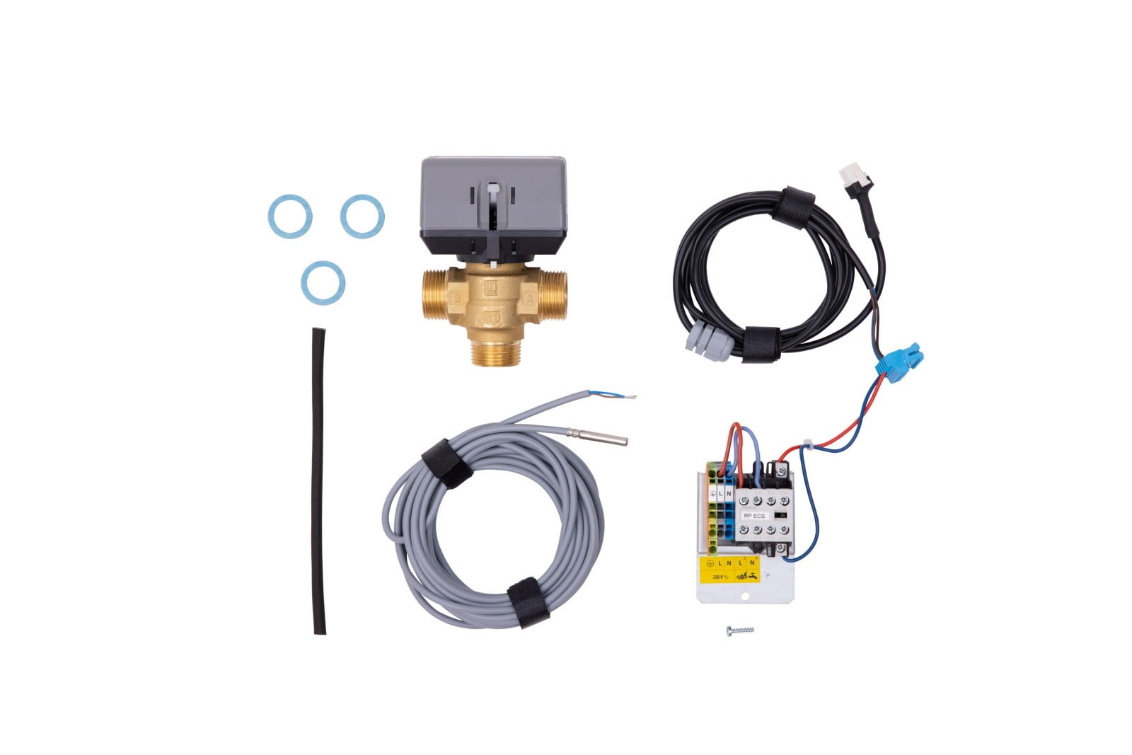 Gestion ecs avec PECS. Composé d'une vanne directionelle motorisée, d'une sonde sanitaire, de borniers de raccordement