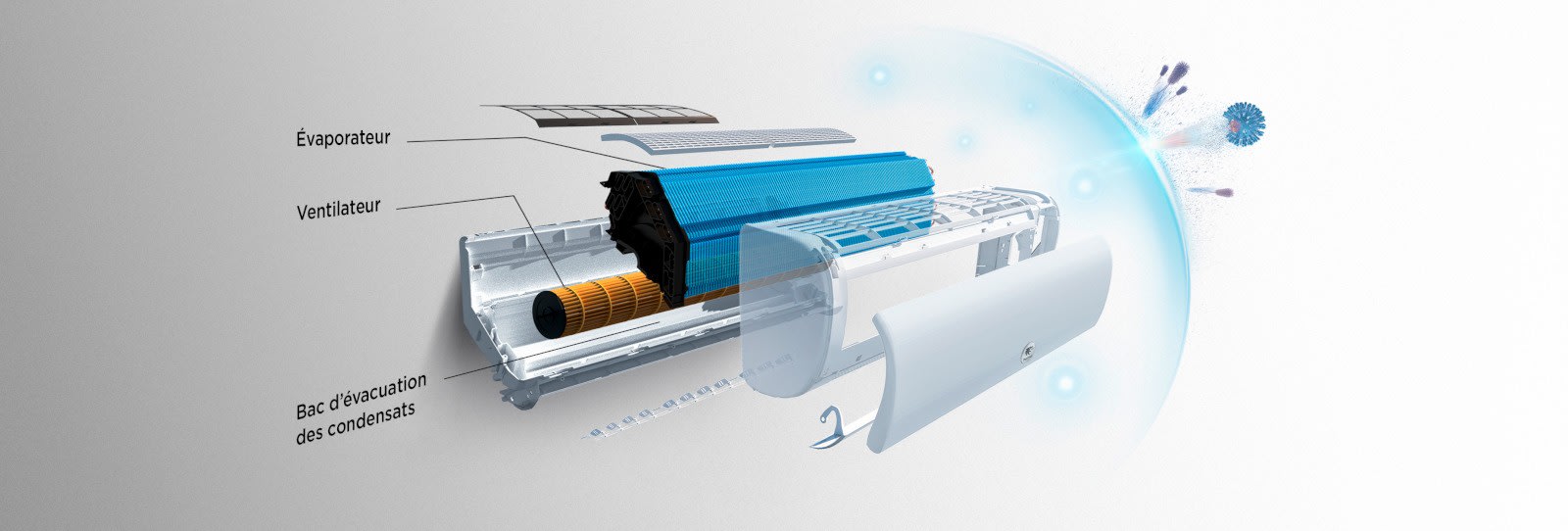 Système auto-clean et revêtement anti-bactérien pour détruire bactéries et virus et diffuser un air sain au contact de l’air